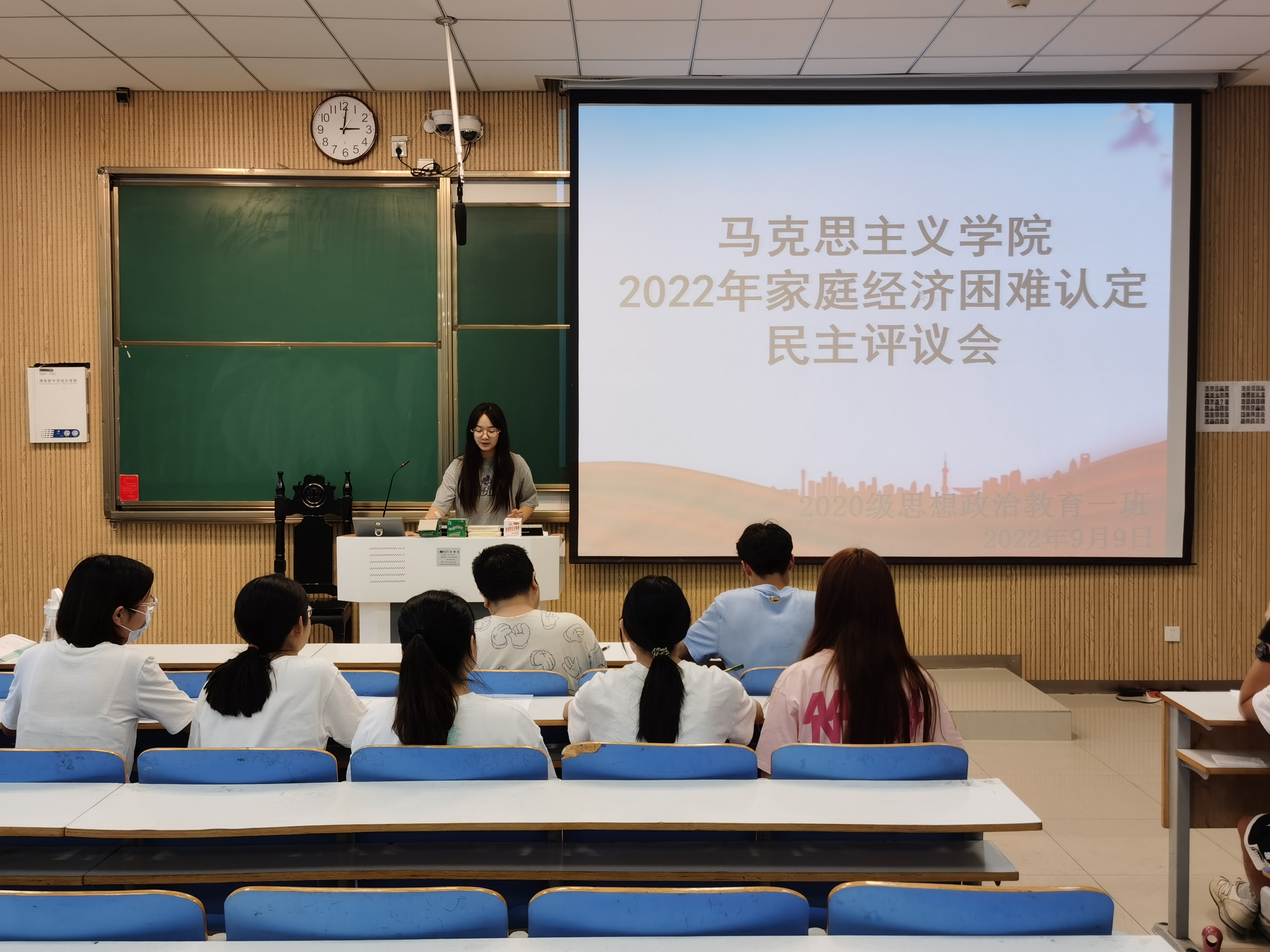 为做好家庭经济困难学生的认定工作,9月9日下午,ok138cn太阳集团5292020级思想政治教育一班在社科楼515教室召开2022年班级贫困认定民主评议会。评议小组成员、申请人及监督人参与了本次会议。会议由团支书卢茜雨主持。