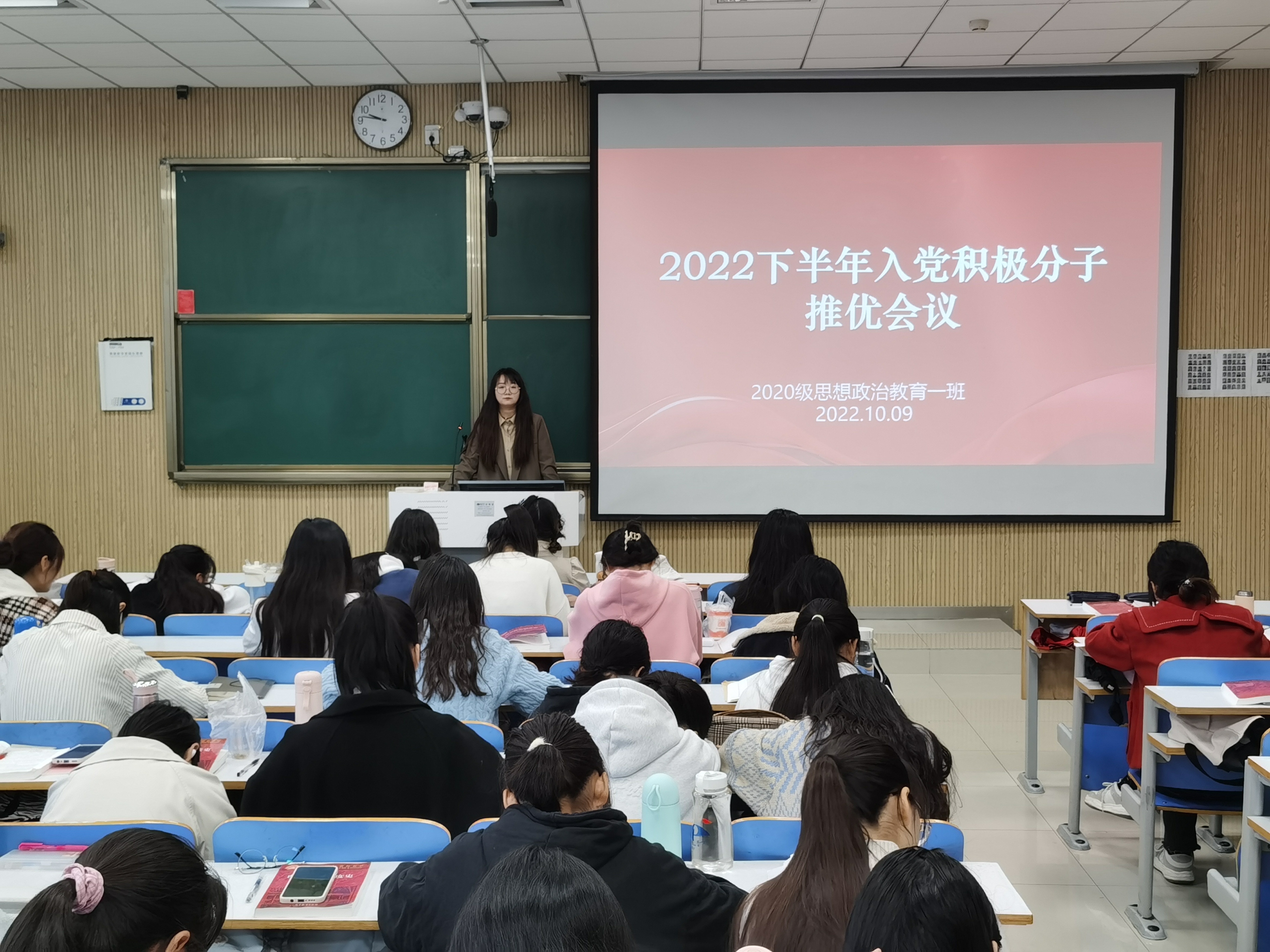 10月9日上午,ok138cn太阳集团5292020级思想政治教育一班团支部在社科楼515教室召开2022年下半年入党积极分子推优会议。我支部全体团员参加此次推优会议,会议由团支部书记卢茜雨主持。