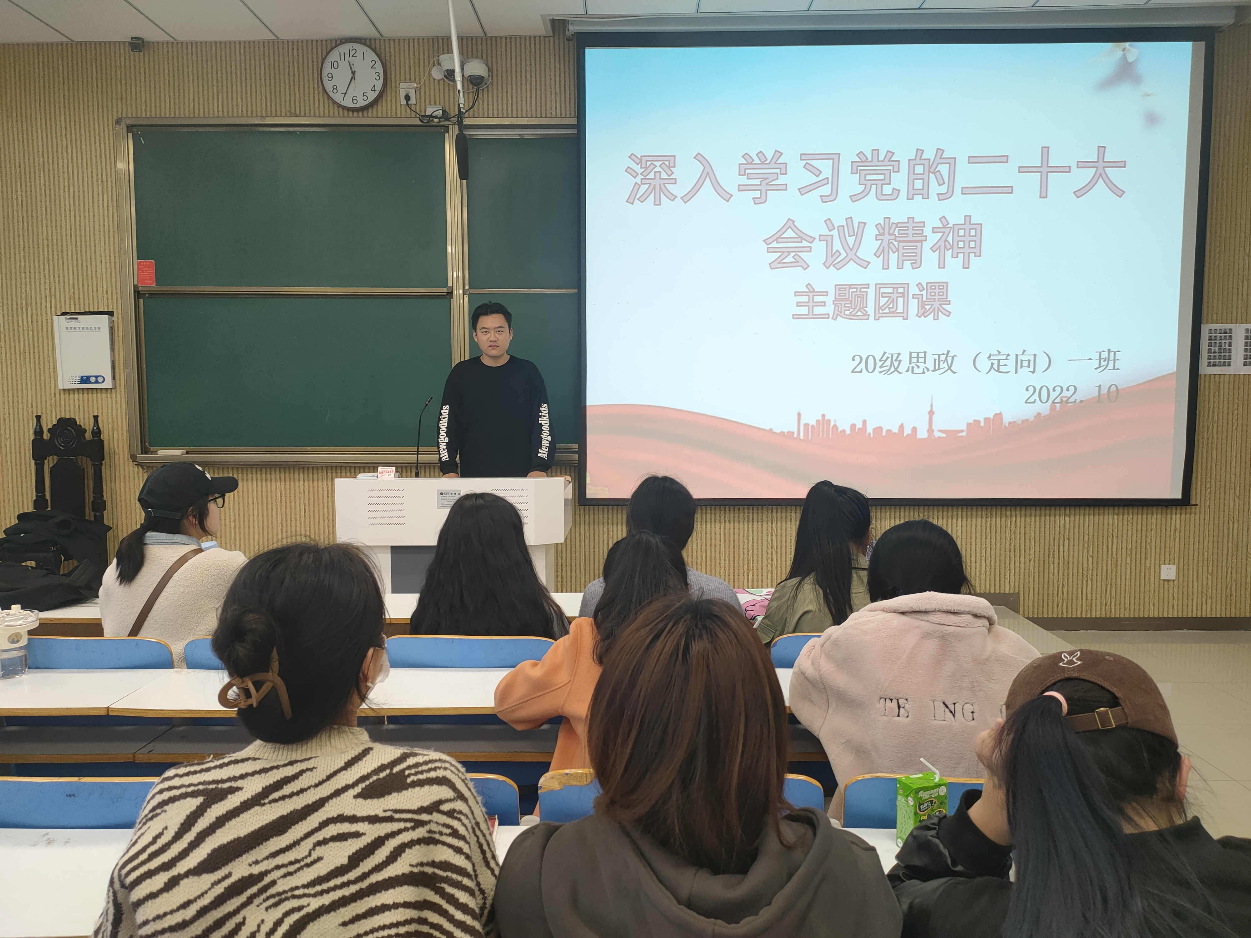 10月28日上午,ok138cn太阳集团5292020级思想政治教育定向一班在社科楼515顺利举办深入学习党的二十大会议精神主题团课。定向一班全体学生聆听了此次团课。