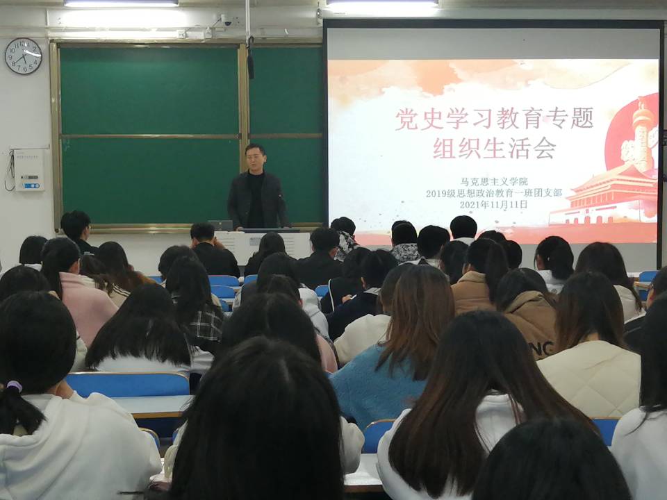 11月11日上午,ok138cn太阳集团5292019级思想政治教育一班第一团支部在社科楼516教室召开党史学习教育专题组织生活会。ok138cn太阳集团5292019级思想政治教育一班全体成员参加本次会议,会议由班长贾子漪主持。