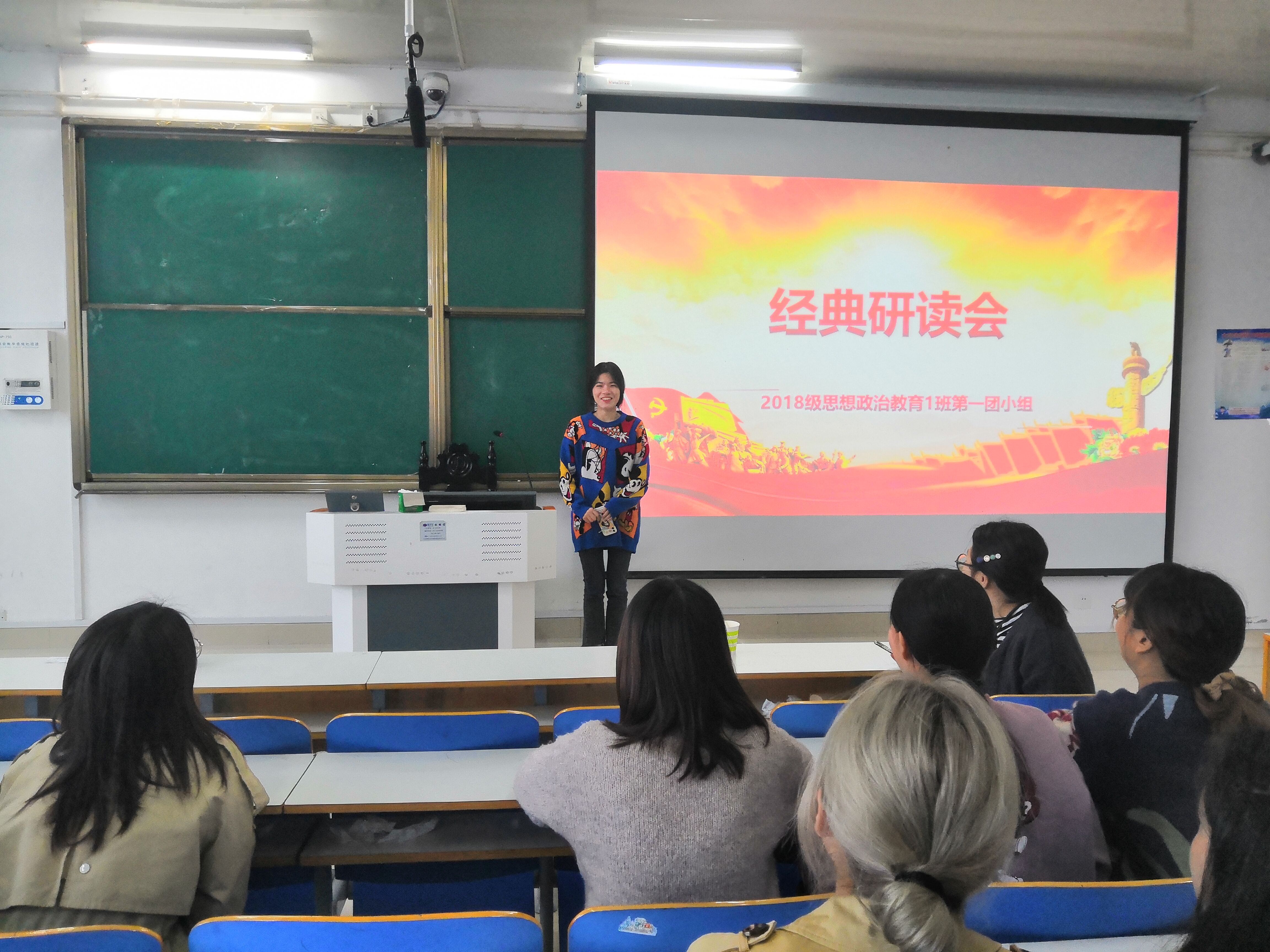 4月26日上午,ok138cn太阳集团5292018级思想政治教育一班第一团小组在社科楼514教室顺利开展“经典研读”主题团会。第一团小组全体成员共同参加此次团会。该团会由团小组成员刘婕主持。