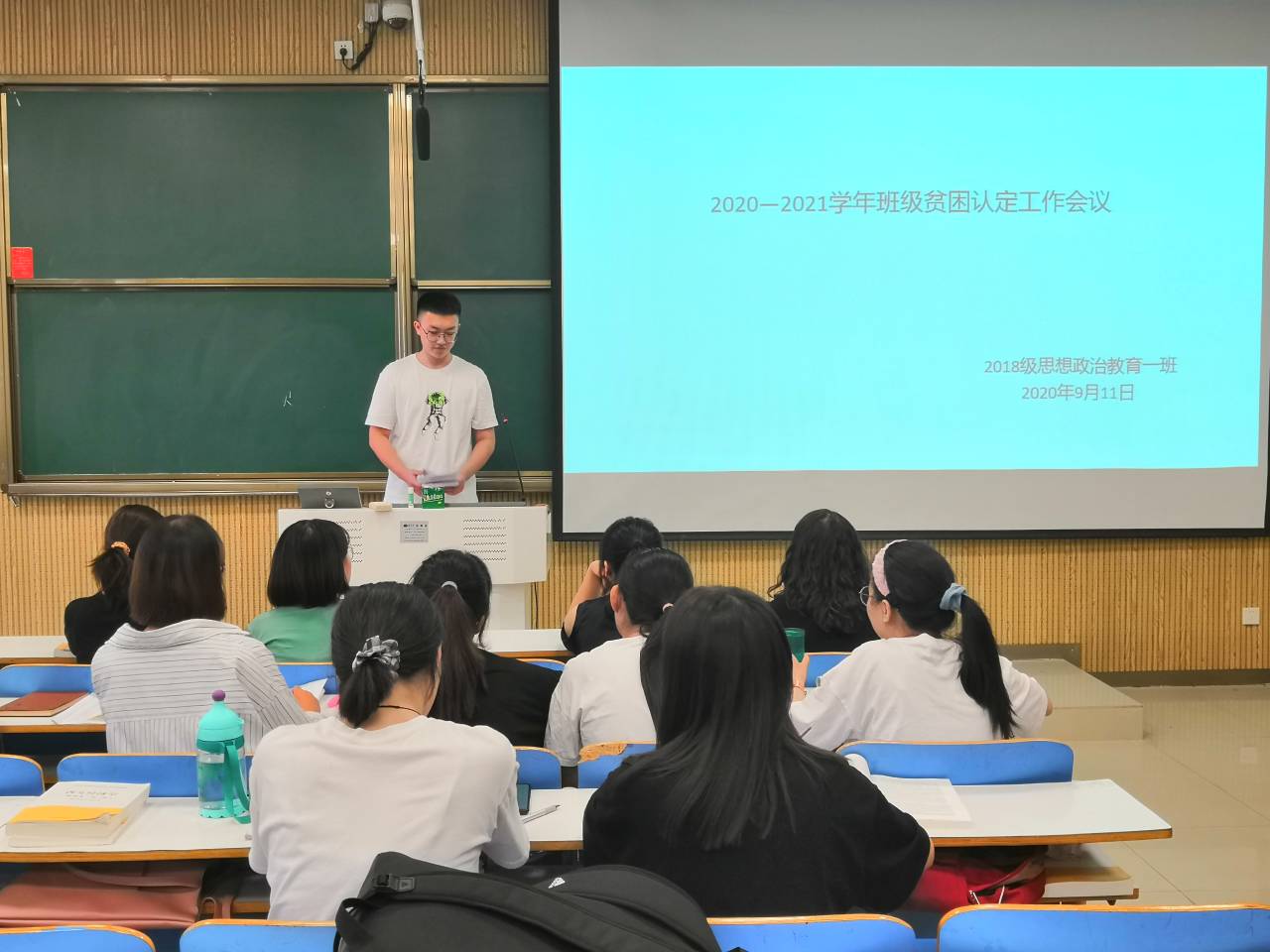 9月11日上午,2018级思想政治教育一班在社科楼515教室顺利开展2020—2021学年班级家庭经济困难认定民主评议会。我院党委副书记何晓坚、2018级思政一班全体班委及班级评议小组共同参加此次会议,学贷部副部长魏子航参与旁听。此次会议由班长邢子豪主持。