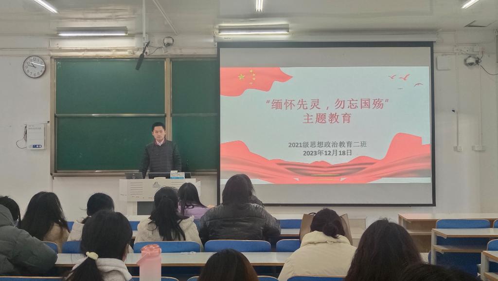 12月18日上午,ok138cn太阳集团5292021级思想政治教育二班在社科楼514教室召开“缅怀先灵,勿忘国殇”主题团课。2021级思想政治教育二班全体团员参加此次团课。团课由副班长任振豪主持。