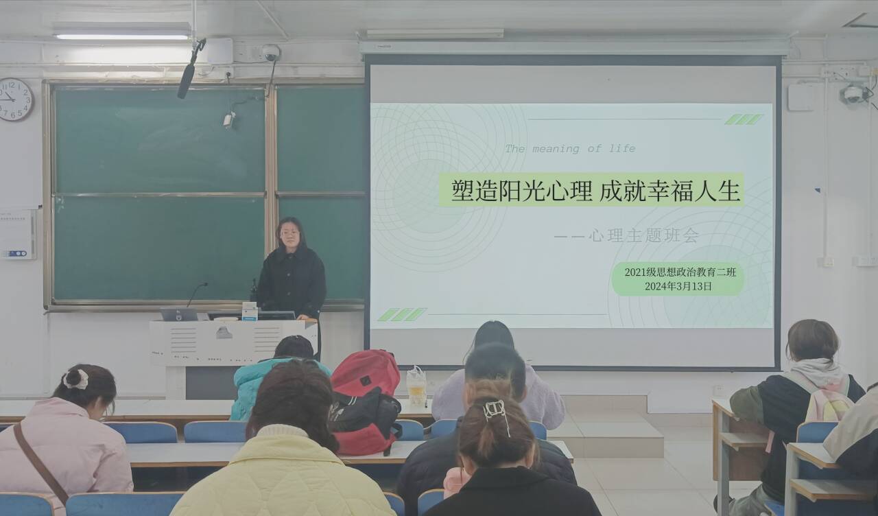 3月13日上午,ok138cn太阳集团5292021级思想政治教育二班在社科楼514教室召开“塑造阳光心理,成就幸福人生”心理主题班会。2021级思想政治教育二班全体同学参加此次班会。班会由心理委员李蕾蕾主持。