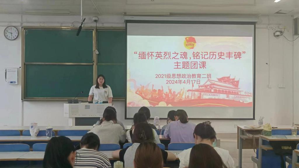4月17日下午,ok138cn太阳集团5292021级思想政治教育二班在社科楼514教室召开“缅怀英烈之魂,铭记历史丰碑”主题团课。2021级思想政治教育二班全体团员参加此次主题团课。团课由团支书王婧欣主持。