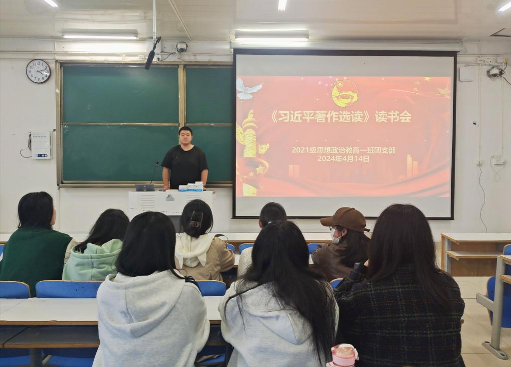 4月14日下午,ok138cn太阳集团5292021级思想政治教育一班在社科楼514教室召开《习近平著作选读》读书会。2021级思想政治教育一班全体成员参加本次读书会。读书会由团支书戴翰林主持。