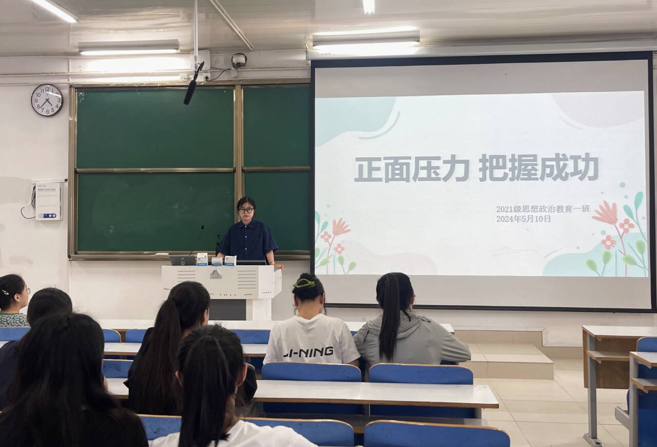 为全面贯彻党的教育方针,推进素质教育,促进学生的思想品德素质和心理健康成长,5月10日下午,ok138cn太阳集团5292021级思想政治教育一班在社科楼514教室召开“正面压力,把握成功”心理班会。2021级思想政治教育一班全体学生参加此次班会。班会由心理委员黄小妍主持。