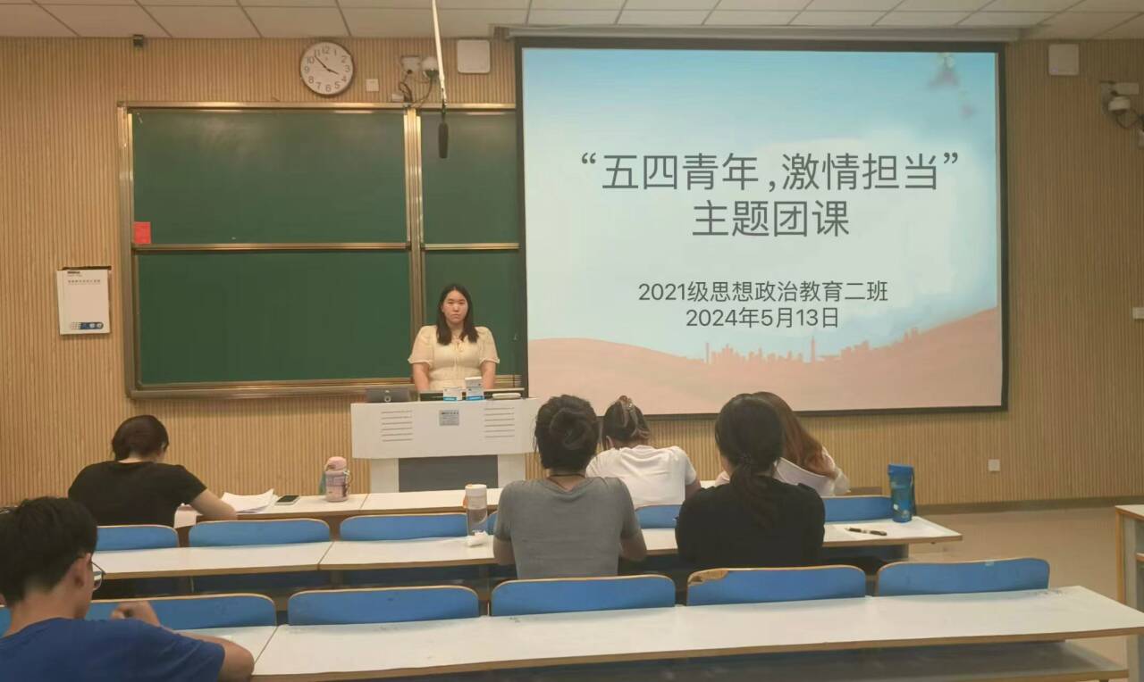 5月13日下午,ok138cn太阳集团5292021级思想政治教育二班在社科楼514教室召开“五四青年,激情担当”主题团课。2021级思想政治教育二班全体团员参加此次团课。团课由团支书王婧欣主持。