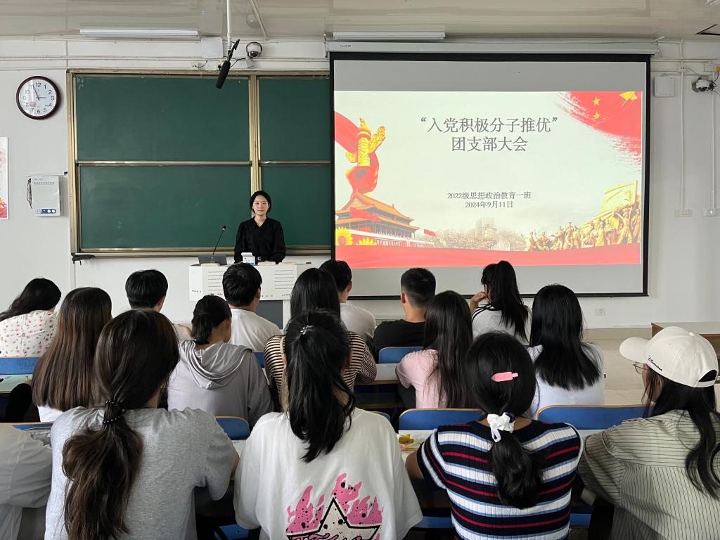 为进一步加强党组织建设,充实党的新生力量,9月11日下午,ok138cn太阳集团5292022级思想政治教育一班在社科楼514教室召开“入党积极分子推优”团支部大会,我院2022级思想政治教育一班全体同学共同参与本次会议,会议由团支书李佳茹主持。