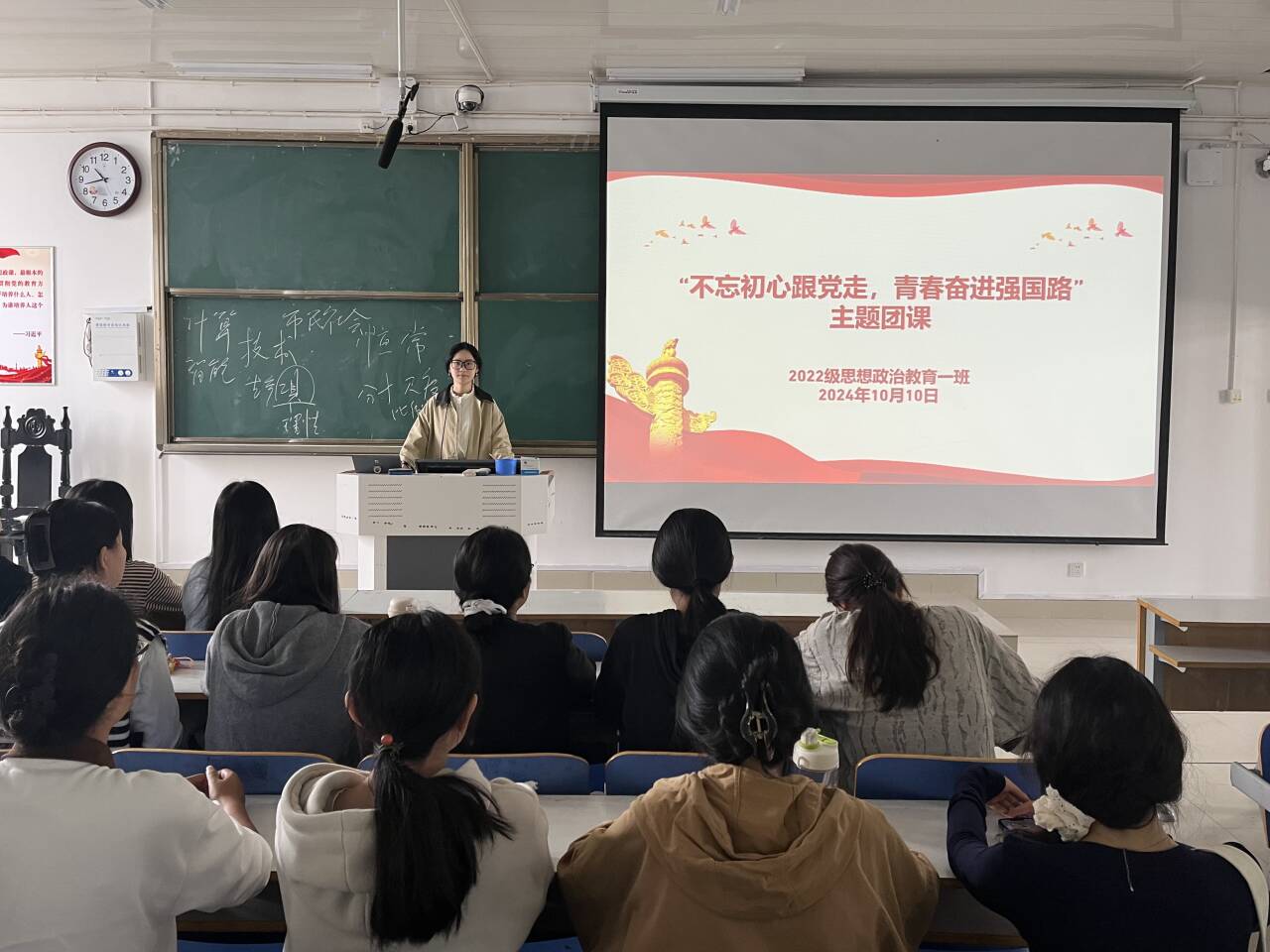 10月10日上午,ok138cn太阳集团5292022级思想政治教育一班在社科楼514教室开展“不忘初心跟党走,青春奋进新征程”主题团课,我院2022级思想政治教育一班全体同学共同参与本次团课,团课由团支书李佳茹主持。
