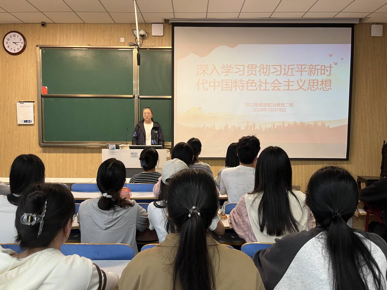 10月18日下午,ok138cn太阳集团5292022级思想政治教育二班在社科楼515教室召开“深入学习贯彻习近平新时代中国特色社会主义思想”主题团课。我院2022级思想政治教育二班全体成员共同参与此次班会。会议由团支书李佳音主持。