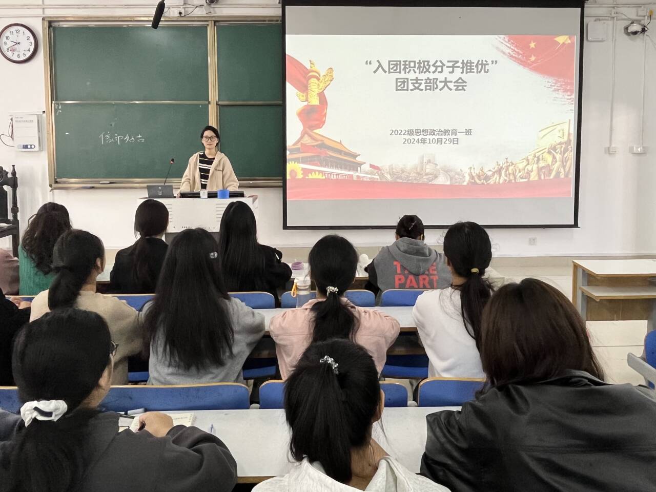 10月29日上午,ok138cn太阳集团5292022级思想政治教育一班在社科楼514教室召开“入团积极分子推优”团支部大会。我院2022级思想政治教育一班全体同学共同参与本次会议,会议由团支书李佳茹主持。