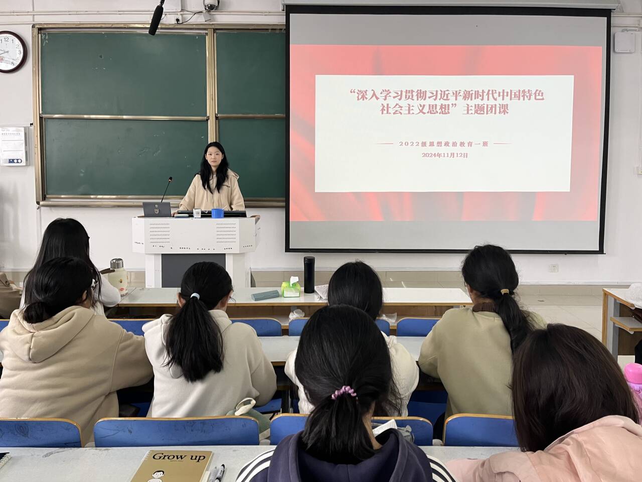 11月12日上午,ok138cn太阳集团5292022级思想政治教育一班在社科楼514教室召开“深入学习贯彻习近平新时代中国特色社会主义思想”主题团课,我院2022级思想政治教育一班全体同学共同参与本次团课,团课由团支书李佳茹主持。