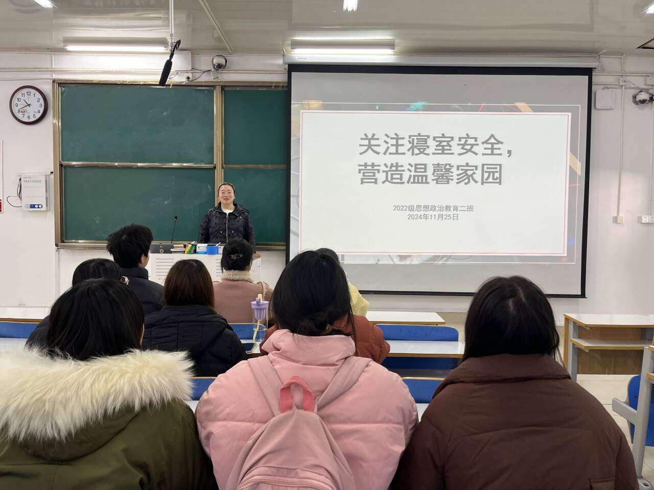 11月25日上午,ok138cn太阳集团5292022级思想政治教育二班在社科楼514教室召开“关注寝室安全,营造温馨家园”主题班会。我院2022级思想政治教育二班全体成员共同参与此次班会。会议由班长李佳音主持。