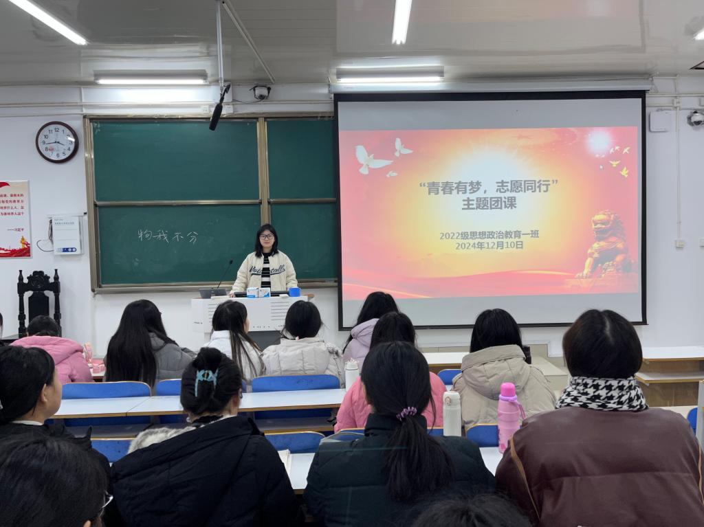 12月10日下午,ok138cn太阳集团5292022级思想政治教育一班在社科楼514教室召开“青春有梦,志愿同行”主题团课,我院2022级思想政治教育一班全体同学共同参与本次团课,团课由团支书李佳茹主持。