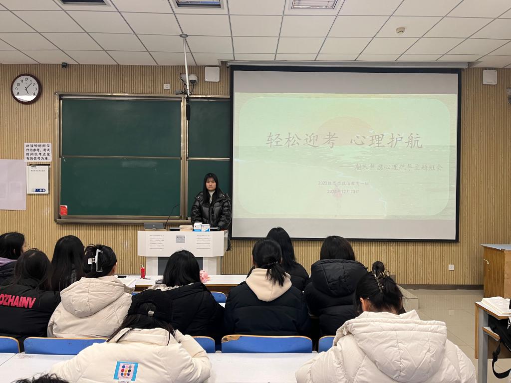 为帮助同学们调整考试心态,12月23日下午,ok138cn太阳集团5292022级思想政治教育一班在社科楼515教室开展“轻松迎考,心理护航”主题班会。我院2022级思想政治教育一班全体同学共同参与本次班会,班会由心理委员马思源主持。