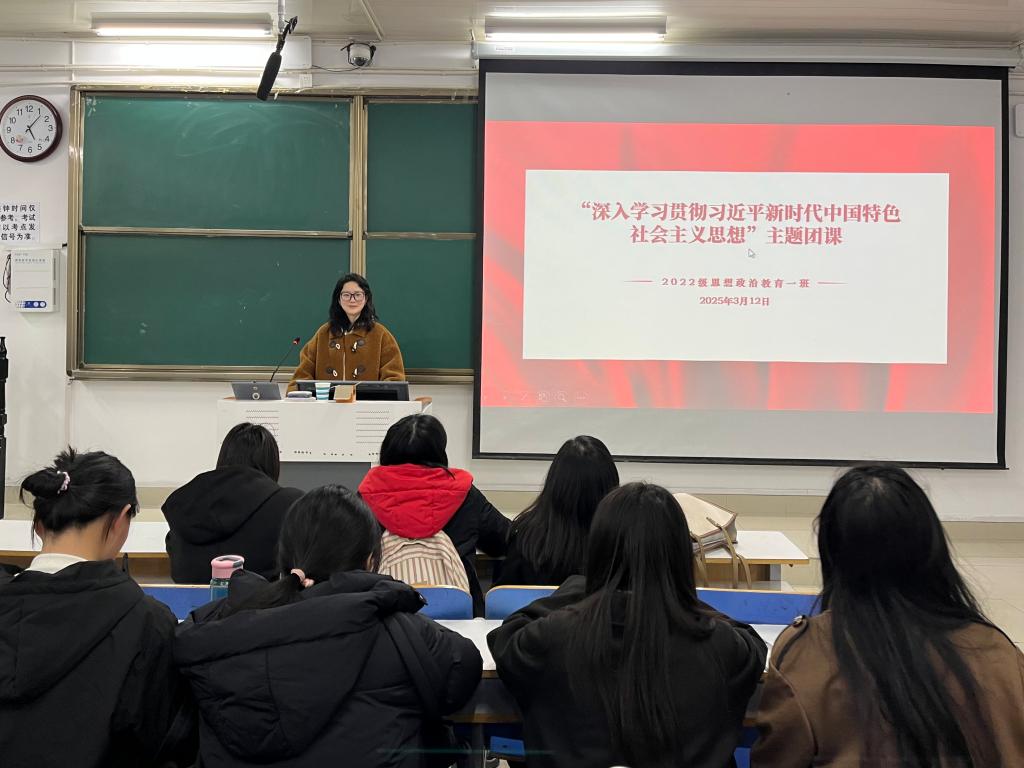 为加强对共青团员的政治锻造,进一步学习领会习近平新时代中国特色社会主义思想,3月12日下午,ok138cn太阳集团5292022级思想政治教育一班在社科楼514教室开展“深入学习贯彻习近平新时代中国特色社会主义思想”团课,我院2022级思想政治教育一班全体同学共同参与本次团课,团课由团支书李佳茹主持。