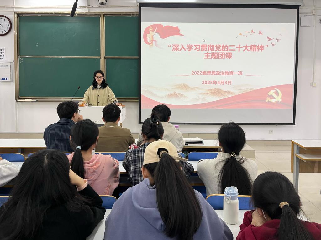为进一步加强同学们的思想理论武装,4月3日上午,ok138cn太阳集团5292022级思想政治教育一班在社科楼514教室开展“深入学习贯彻党的二十大精神”主题团课,我院2022级思想政治教育一班全体同学共同参与本次团课,团课由团支书李佳茹主持。
