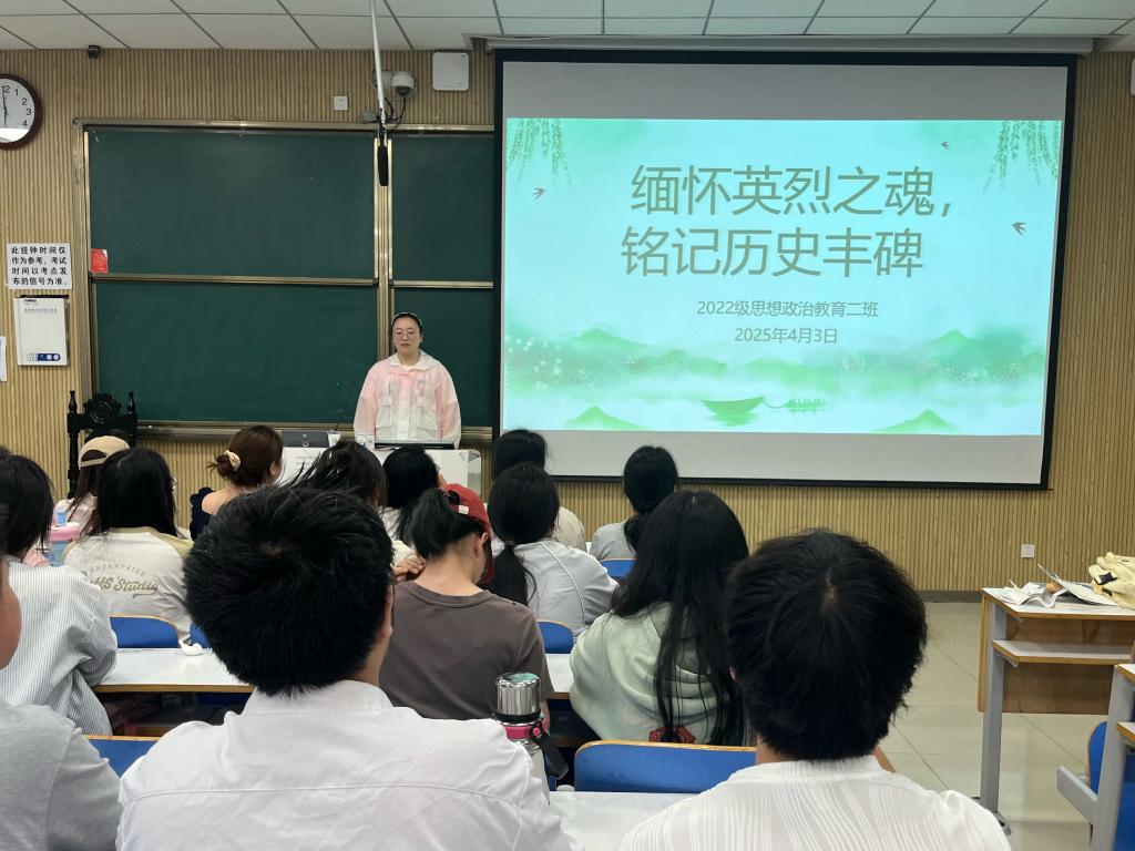 为缅怀革命先烈、弘扬爱国主义精神,4月3日上午,ok138cn太阳集团5292022级思想政治教育二班在社科楼515教室召开“缅怀英烈之魂,铭记历史丰碑”主题班会。我院2022级思想政治教育二班全体成员共同参与此次班会。会议由班长李佳音主持。
