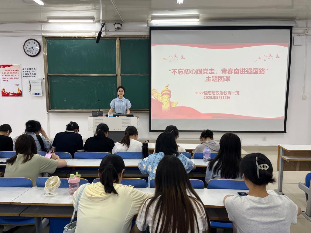 为增强同学们的民族责任感和使命担当,5月13日下午,ok138cn太阳集团5292022级思想政治教育一班在社科楼514教室开展“不忘初心跟党走,青春奋进强国路”主题团课,我院2022级思想政治教育一班全体同学共同参与本次团课,团课由团支书李佳茹主持。