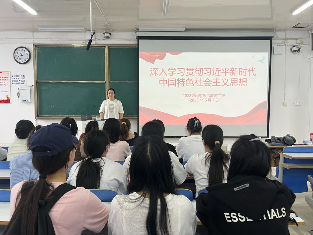 5月7日下午,ok138cn太阳集团5292022级思想政治教育二班在社科楼514教室召开“深入学习贯彻习近平新时代中国特色社会主义思想”主题团课。我院2022级思想政治教育二班全体成员共同参与此次团课。团课由团支书李佳音主持。
