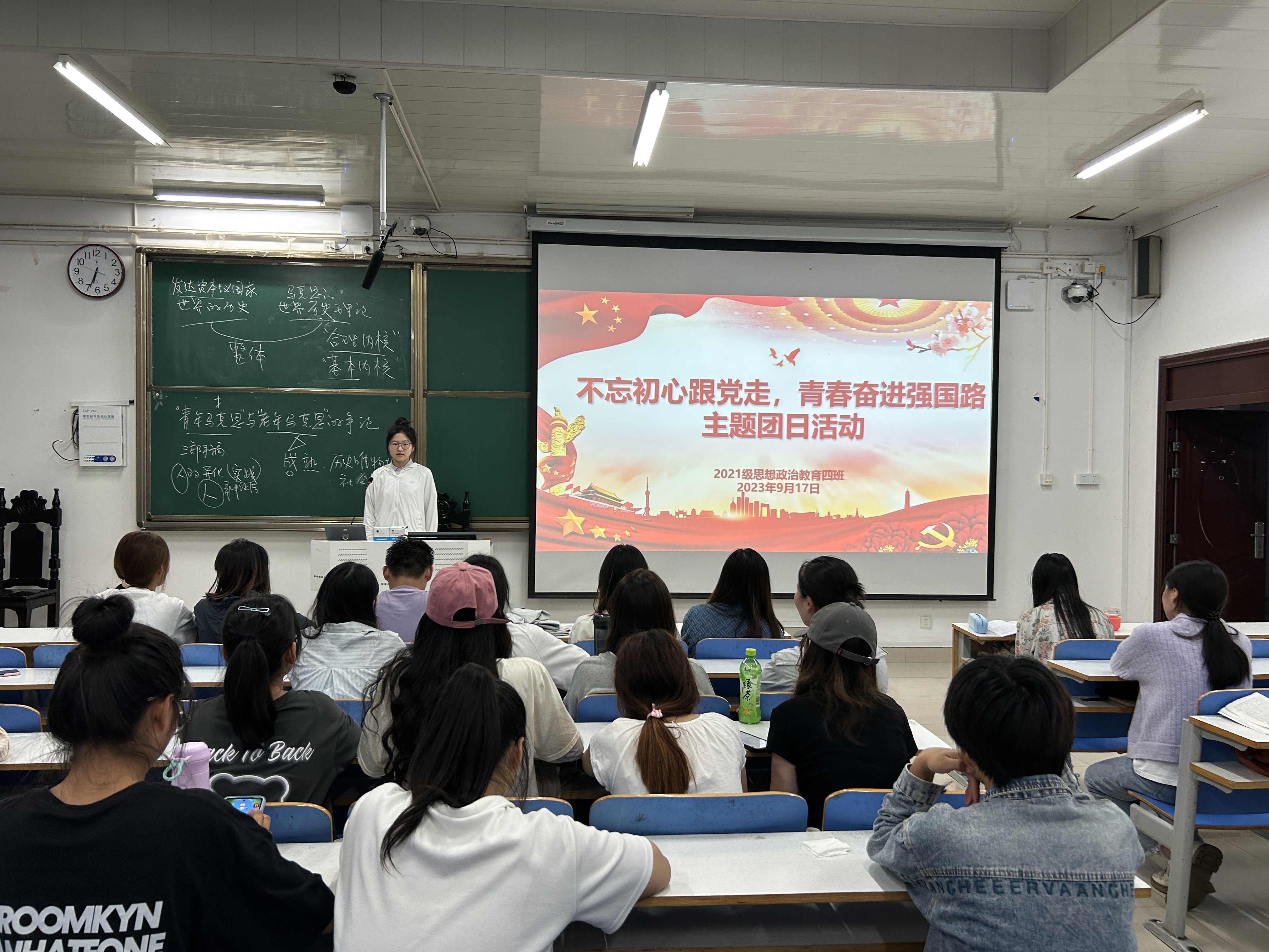 9月17日下午,ok138cn太阳集团5292021级思想政治教育四班在社科楼515教室召开“不忘初心跟党走,青春奋进强国路”主题团日活动。2021级思想政治教育四班全体团员共同参加本次团课。团课由团支书刘珂含主持。