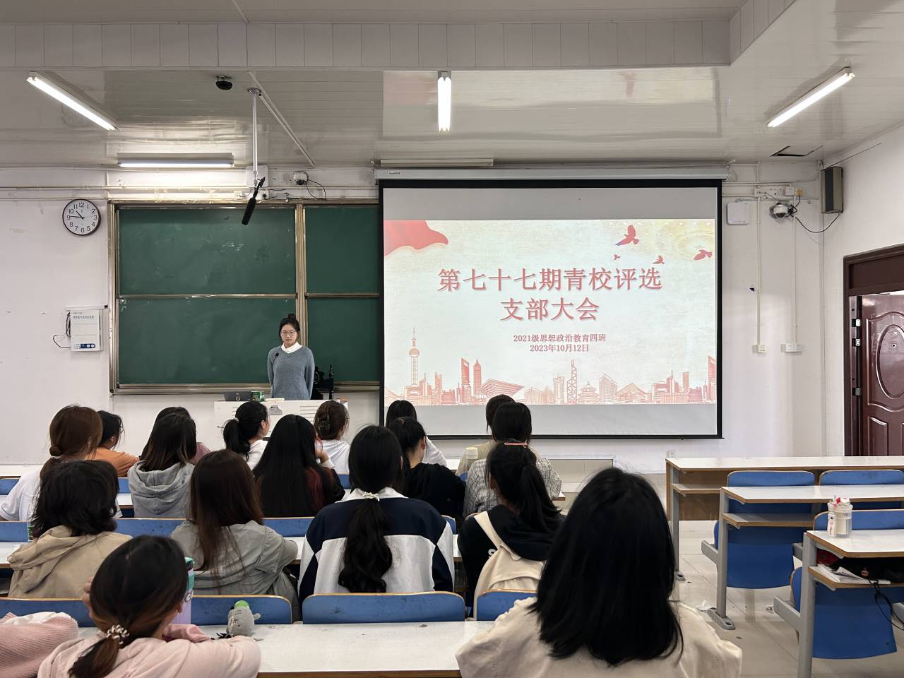 10月12日下午,ok138cn太阳集团5292021级思想政治教育四班在社科楼515教室开展第77期“青校”评选团支部大会。ok138cn太阳集团5292021级思想政治教育四班全体团员共同参与本次会议。会议由团支书刘珂含主持。