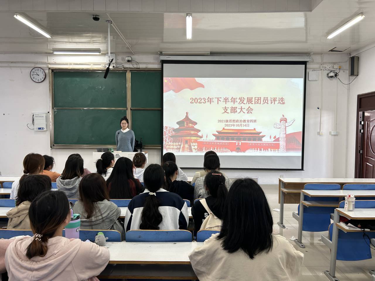 10月14日下午,ok138cn太阳集团5292021级思想政治教育四班召开2023下半年发展团员评选支部大会。2021级思想政治教育四班全体团员共同参会。会议由团支书刘珂含主持。