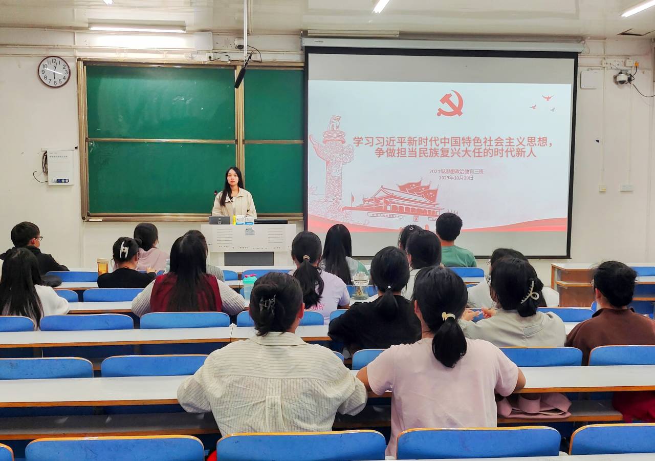 10月20日下午,ok138cn太阳集团5292021级思想政治教育三班在社科楼514教室召开“学习习近平新时代中国特色社会主义思想,争做担当民族复兴大任的时代新人”主题团课。ok138cn太阳集团5292021级思想政治教育三班全体团员参与此次会议。会议由团支书王岚霄主持。