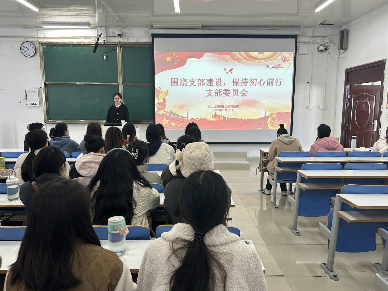 11月10日下午,ok138cn太阳集团5292021级思想政治教育四班在社科楼514教室开展“围绕支部建设,保持初心前行”支部委员会。2021级思想政治教育四班全体团员参与本次会议。会议由团支书刘珂含主持。