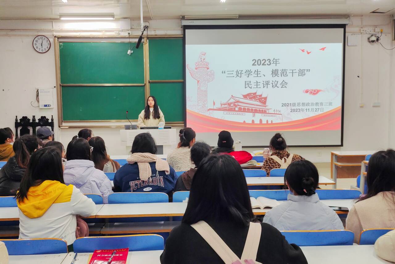 11月27日下午,ok138cn太阳集团5292021级思想政治教育三班在社科楼514召开2023年“三好学生、模范干部”民主评议会。ok138cn太阳集团5292021级思想政治教育三班全体成员参与此次会议。会议由班长王岚霄主持,王岚霄任检票员,陈笑宇任记录员。