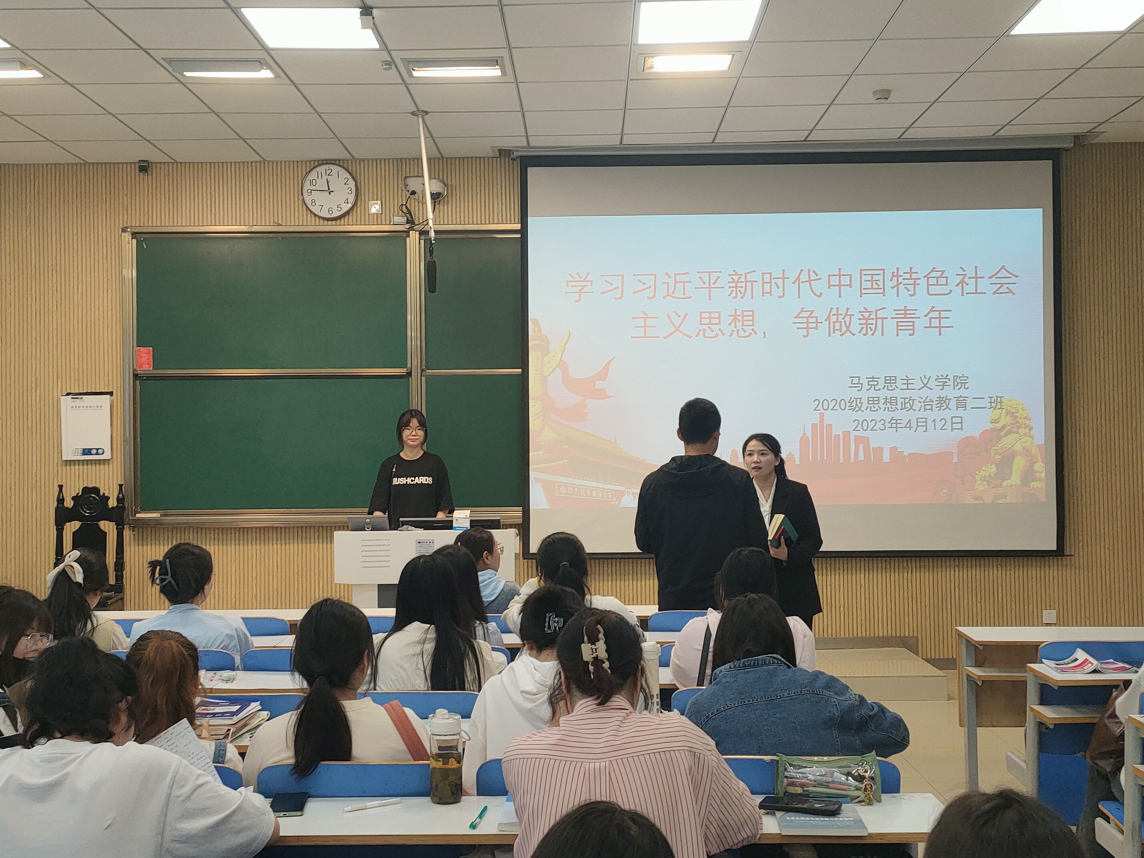 感悟思想伟力,凝聚奋进力量。为积极响应我校关于开展学习宣传贯彻习近平新时代中国特色社会主义思想主题教育的通知要求,推动我班理论学习进一步走深走实,4月12日上午,ok138cn太阳集团5292020级思想政治教育二班、定向二班团支部在社科楼515教室开展“学习习近平新时代中国特色社会主义思想,争做新时代青年”主题团课。二班、定向二班全体团员共同参与此次团课。团课由团支书李晨曦讲授。