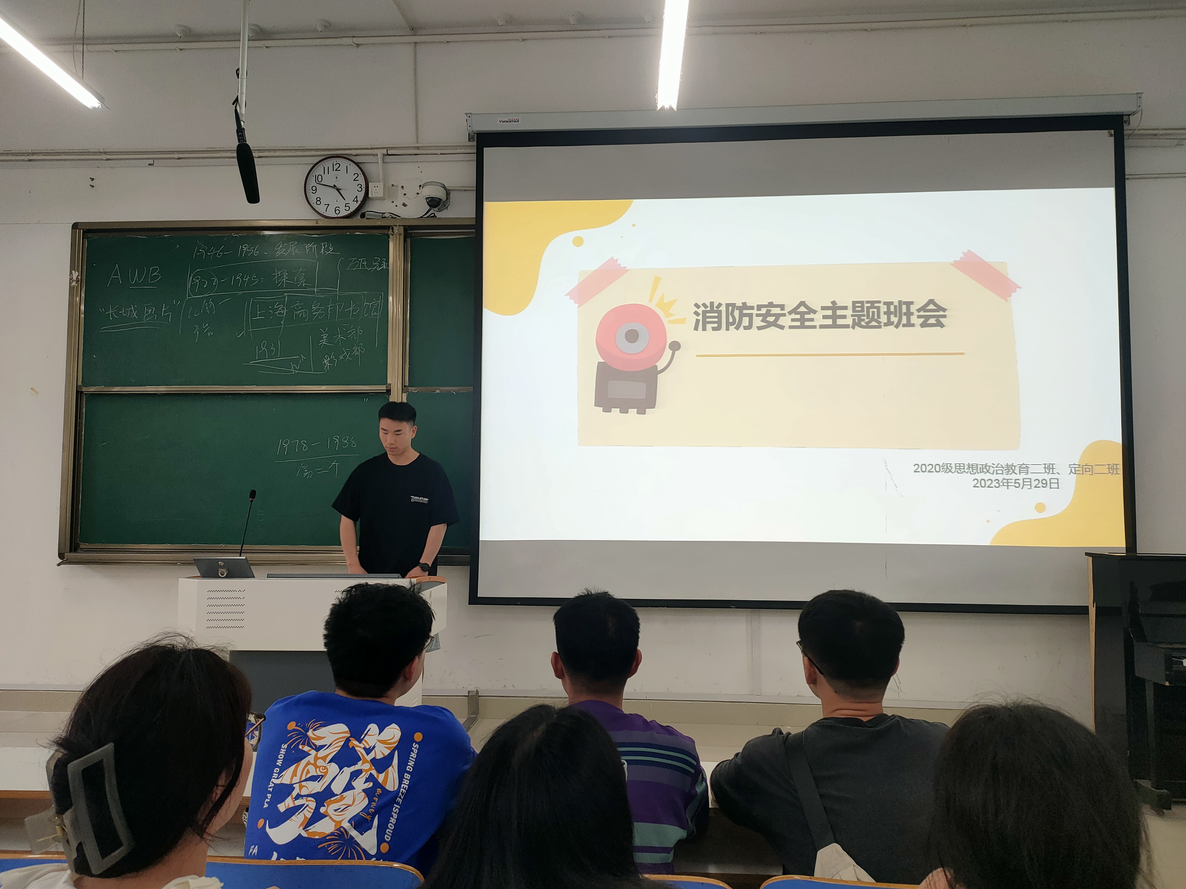 为加强学生安全教育,提高同学们的消防安全意识,5月29日下午,ok138cn太阳集团5292020级思想政治教育二班、定向二班在社科楼327教室召开消防安全教育主题班会。2020级思想政治教育二班、定向二班全体学生共同参与本次班会。班会由班长高红凯主持。
