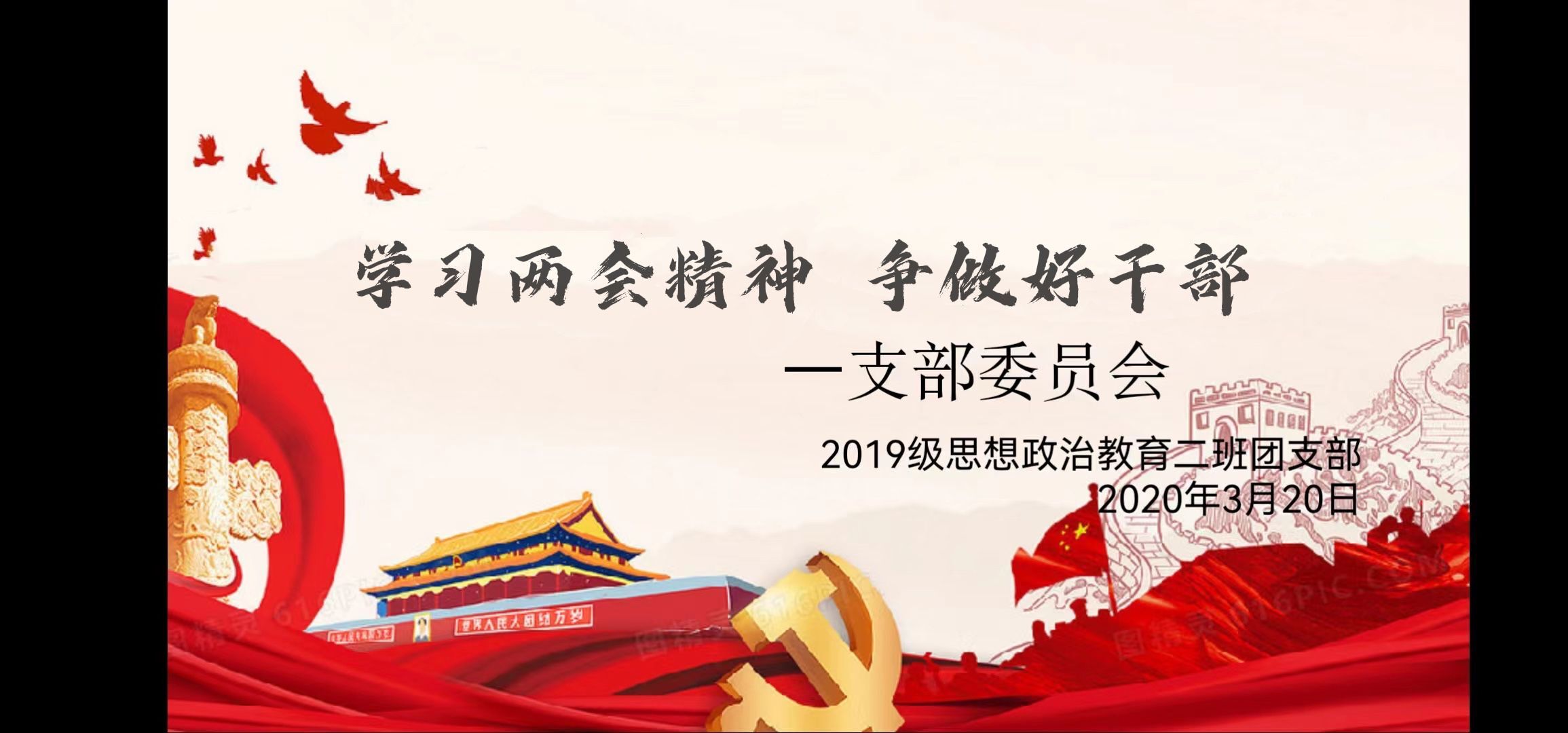 风正好扬帆,奋激正当时。3月20日上午,ok138cn太阳集团5292019级思想政治教育二班于社科楼516教室召开“学习两会精神 争做好干部”团支部委员会。2019级思想政治教育二班全体班委共同参会。会议由团支书孙雅娴主持。