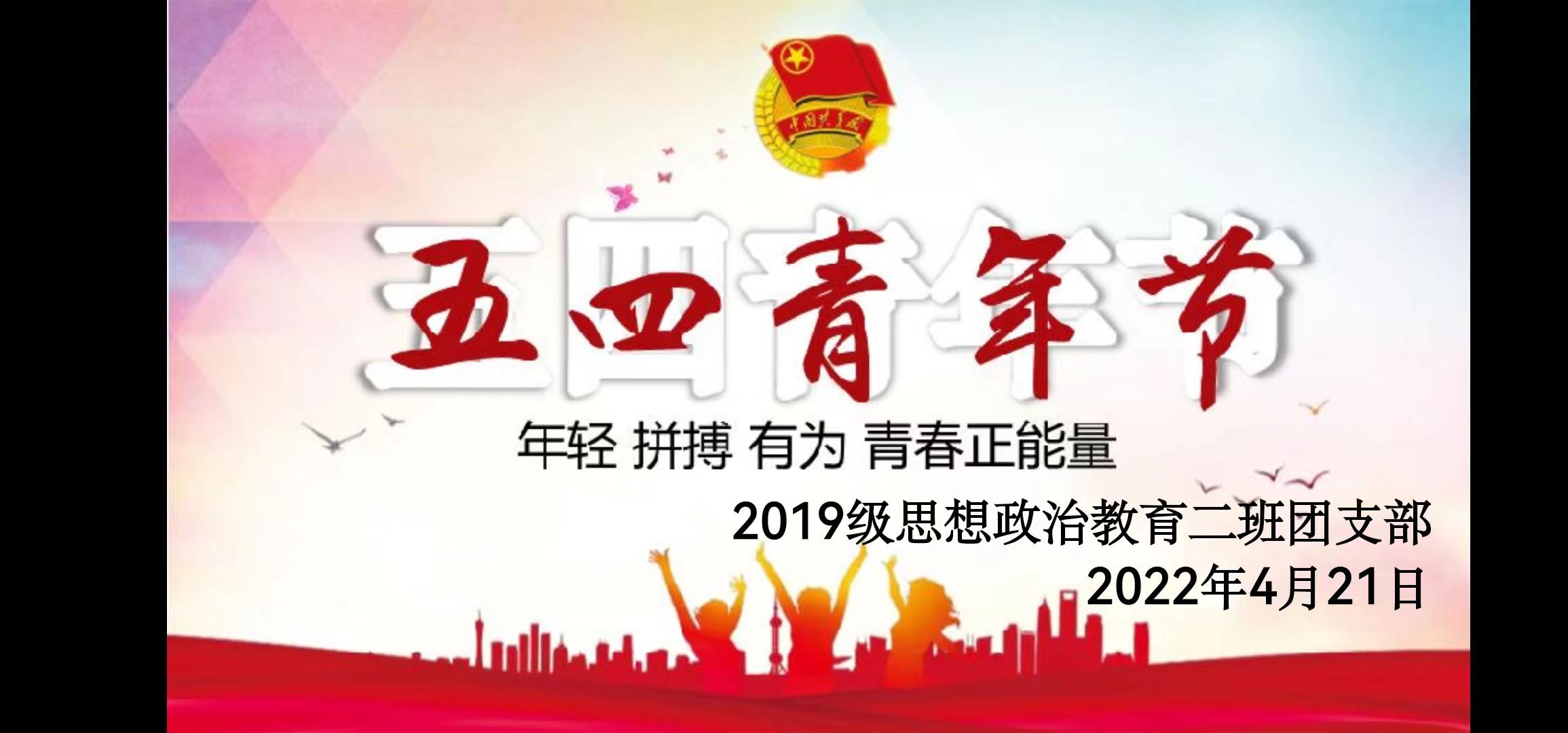 不忘初心来时路,砥砺奋进新征程,为纪念五四运动103周年,4月21日上午,我院2019级思想政治教育二班于腾讯会议召开“五四青年节—年轻 拼搏 有为 青春正能量”主题团课。2019级思想政治教育二班全体成员共同参会,会议由团支书孙雅娴主持。