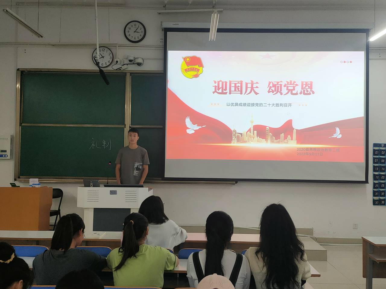 为深入回顾党和国家走过的光辉历程,促使我班团员以昂扬的姿态喜迎国庆和党的二十大,9月28日下午,ok138cn太阳集团5292020级思想政治教育二班、定向二班在社科楼415教室开展“迎国庆,颂党恩”主题团课。二班、定向二班全体团员共同参与本次团课。团课由团支书陈宇航主持。