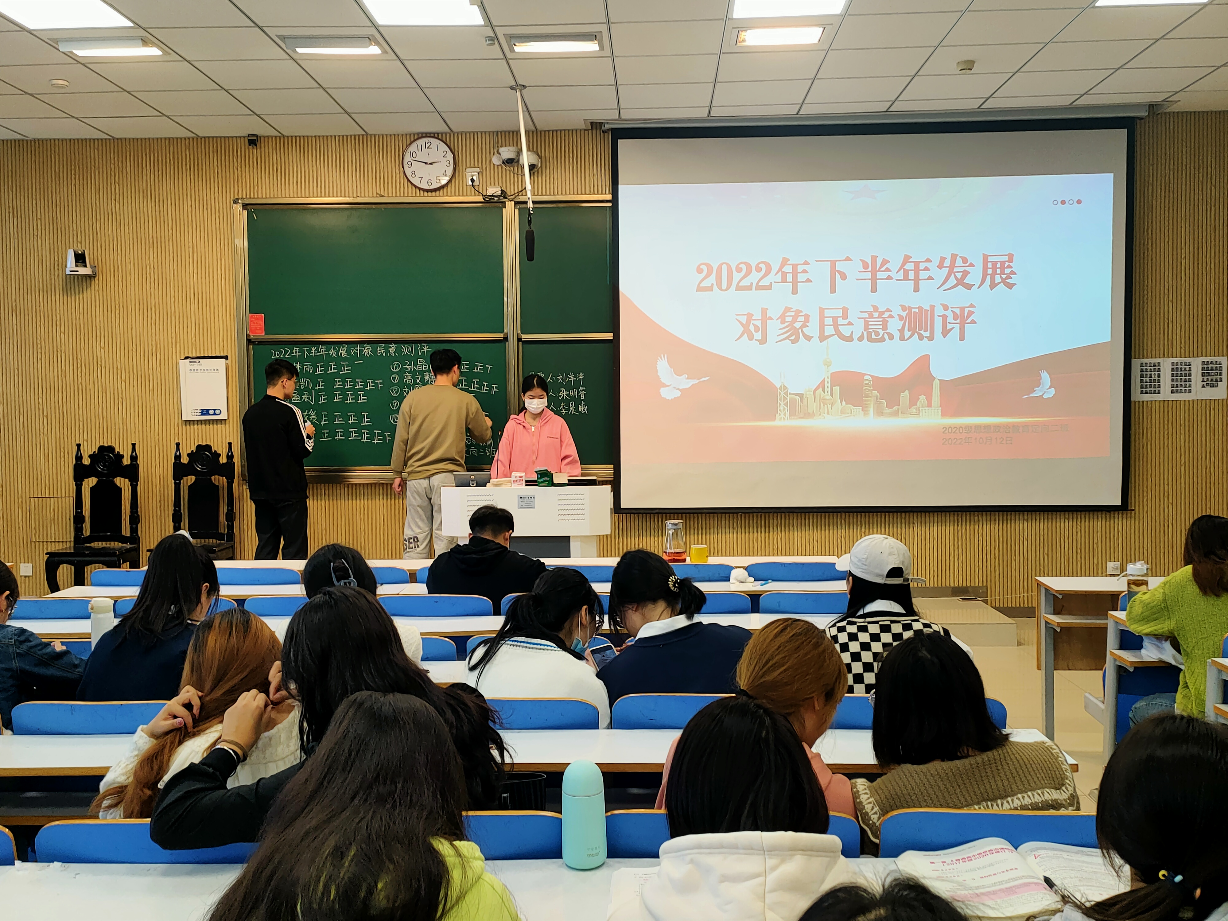 10月13日下午,ok138cn太阳集团5292020级思想政治教育定向二班在社科楼515教室召开2022年下半年党员发展对象民意测评会。定向二班全体同学共同参与此次会议。会议由团支书李晨曦主持。