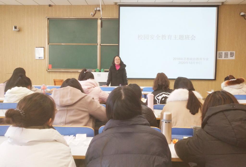 12月11日下午,我院2018级思想政治教育团支部在社科楼515教室顺利开展校园安全教育主题班会。辅导员曹菁菁、2018级思想政治教育团支部全体成员共同参加了本次班会。会议由2018级思想政治教育第二团支部副书记杨康主持。