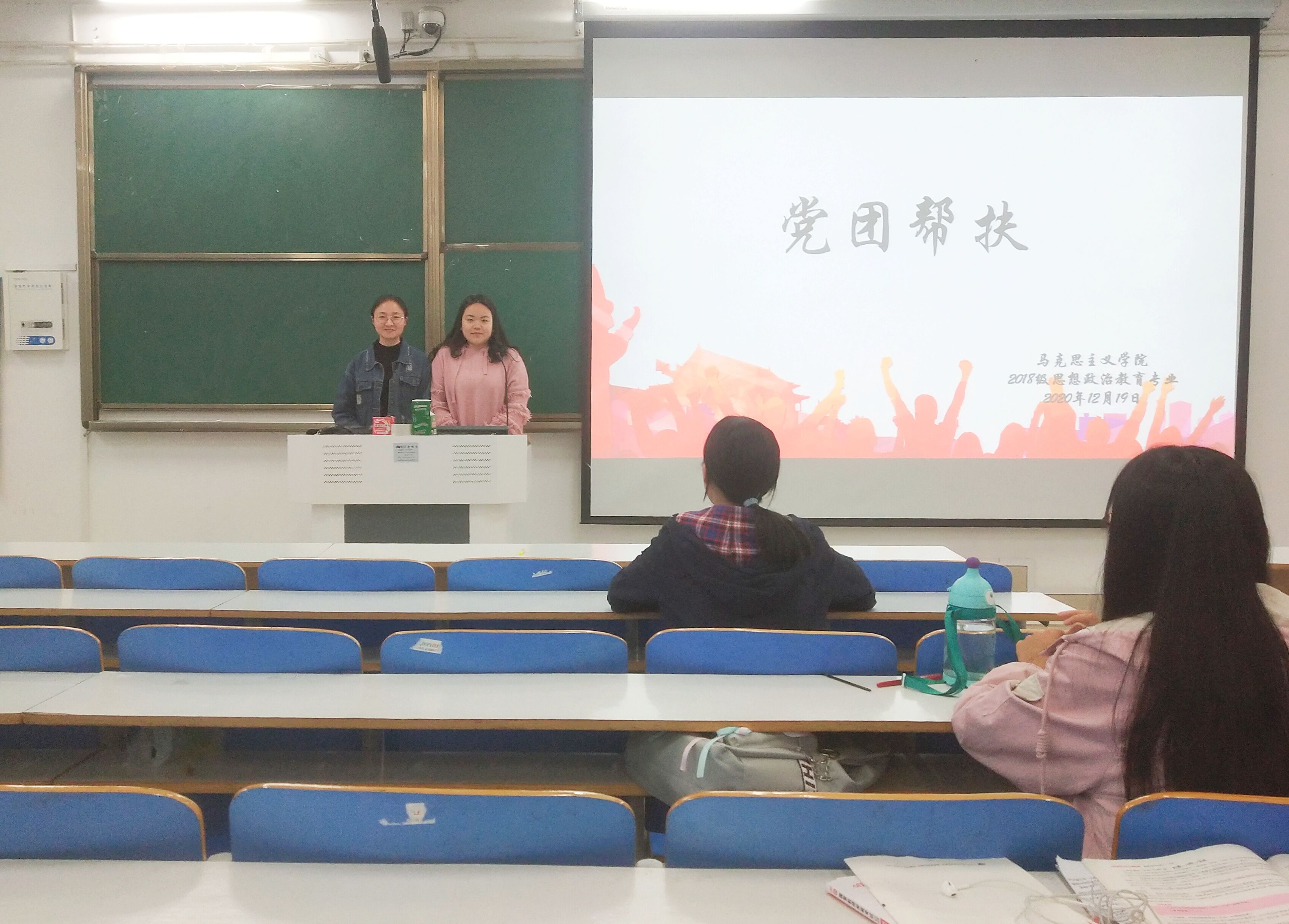 12月19日下午,我院2018级思想政治教育团支部在社科楼514教室顺利开展党团帮扶活动。我院2018级团支部邀请学生党员代表秦康怡、李梦茹前来参加此次交流活动。本次活动由2018级思想政治教育第二团支部书记黄子晋主持。