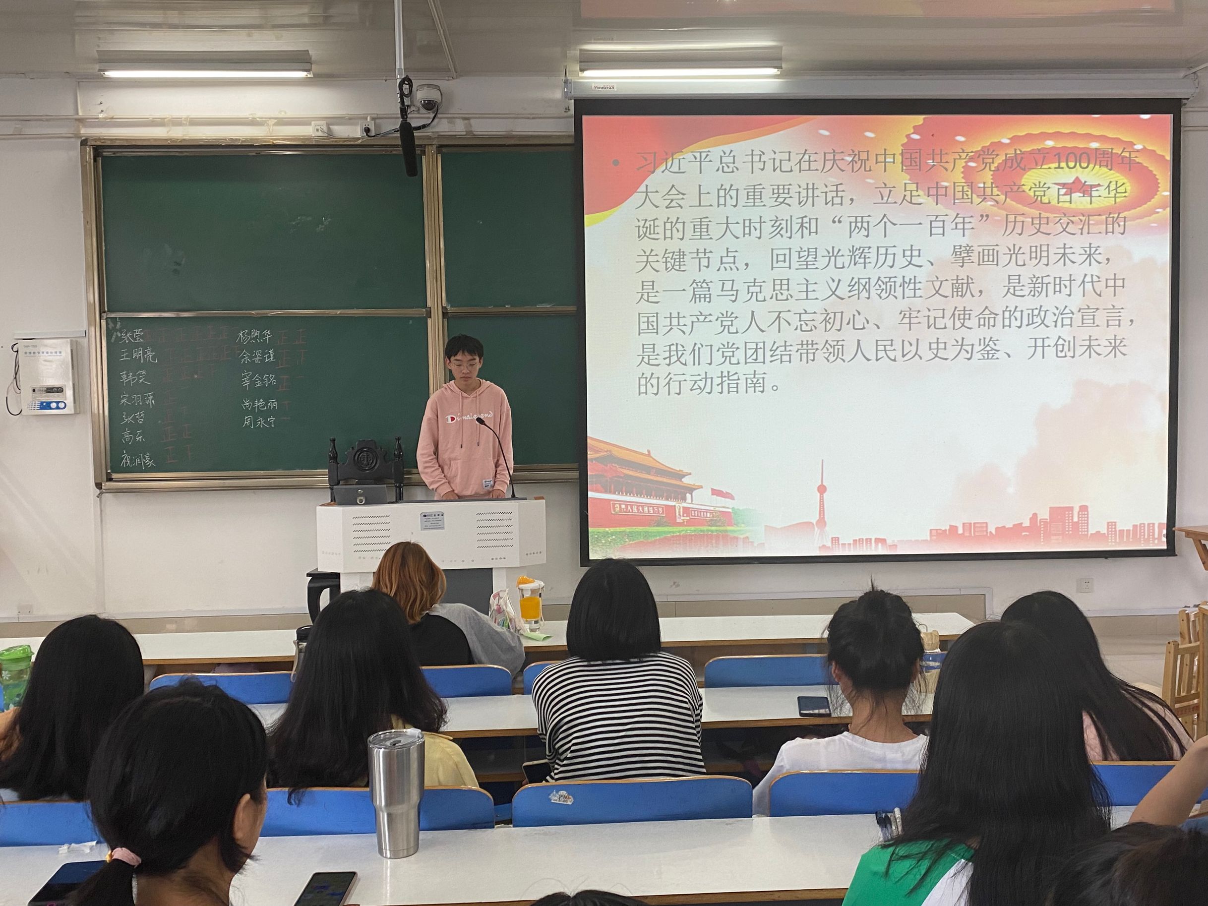 百年征程波澜壮阔,百年初心历久弥坚。9月27日上午,我院2019级思想政治教育二班于社科楼514教室召开“请党放心 强国有我”——学习“七一”重要讲话精神主题团课。2019级思想政治教育二班全体学生共同参会。会议由心理委员魏子豪主持。