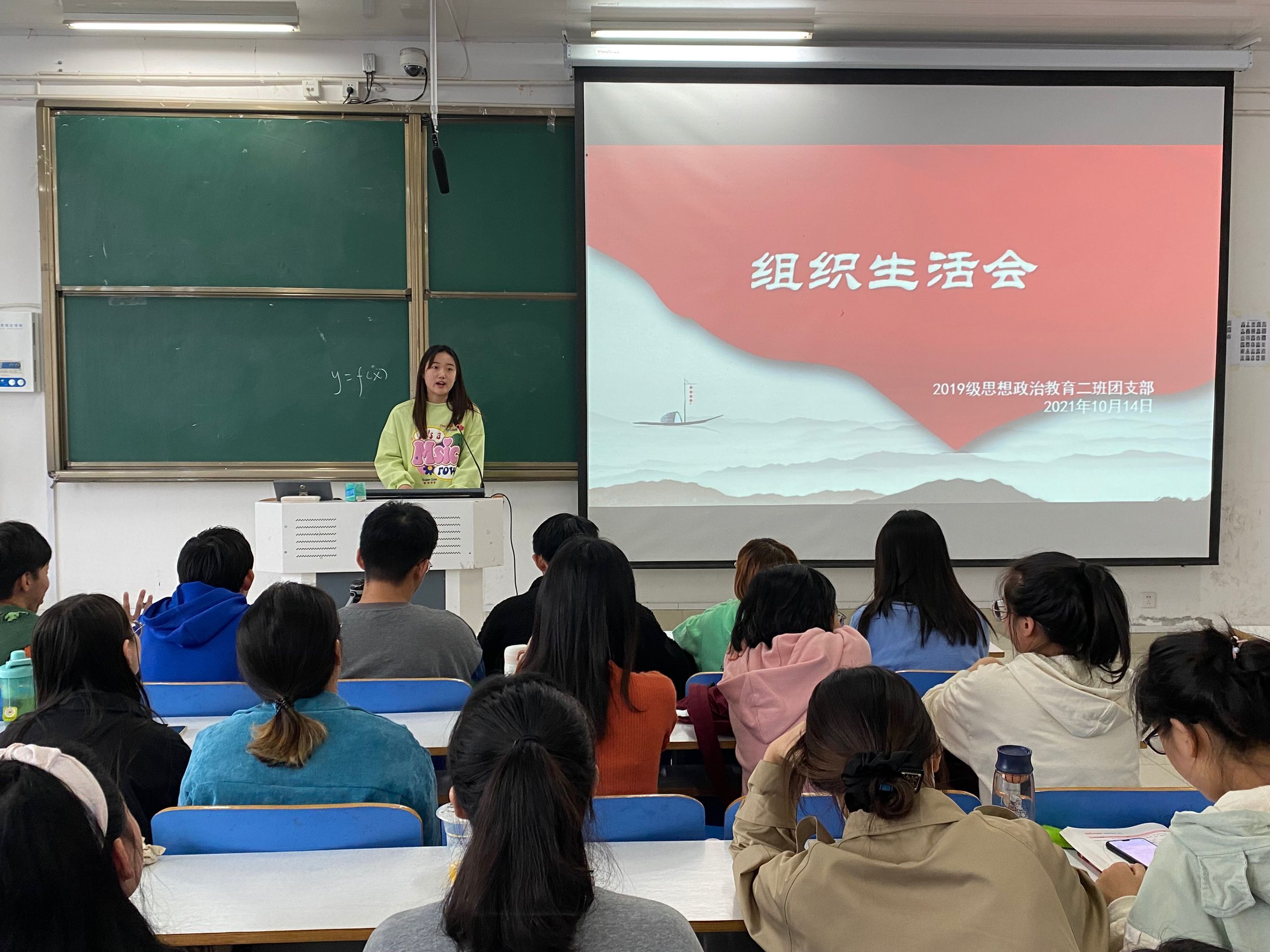 为贯彻落实团中央《关于在全团开展“学党史、强信念、跟党走”》文件精神,进一步推动团支部党史学习教育走深走实,10月14日上午,ok138cn太阳集团5292019级思想政治教育二班于社科楼516教室召开“学党史、强信念、跟党走”专题组织生活会。2019级思想政治教育二班全体成员共同参会。会议由团支书孙雅娴主持。