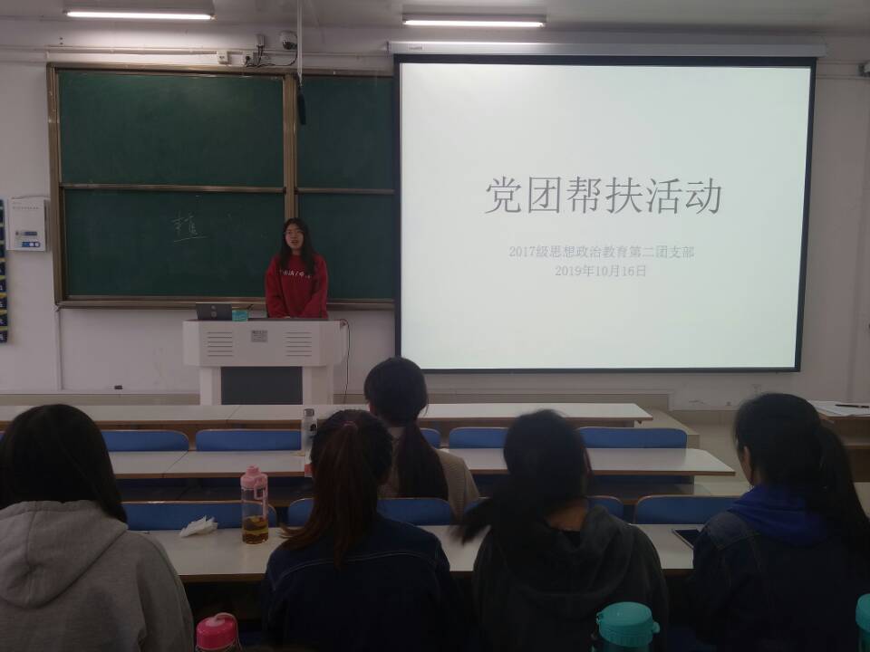 10月16日上午,我院2017级第二团支部在社科楼516教室顺利开展党团帮扶活动。预备党员赵晓童、王慧芳、2017级第二团支部全体成员参加本次活动。活动由组织委员王泽鑫主持。