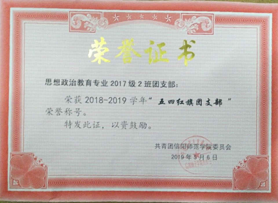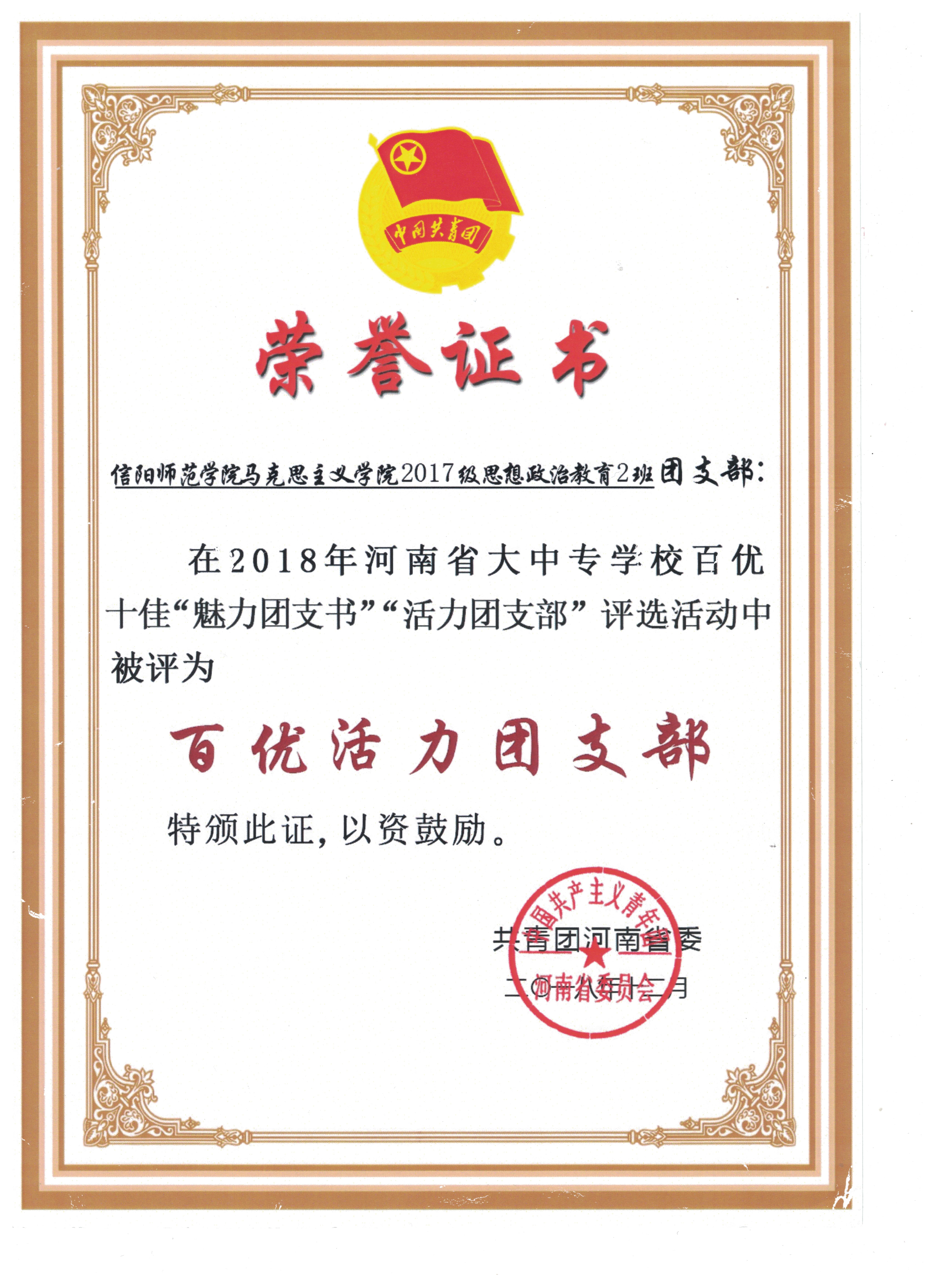 ok138cn太阳集团5292017级第二团支部获“百优活力团支部”、“五四红旗团支部”荣誉称号