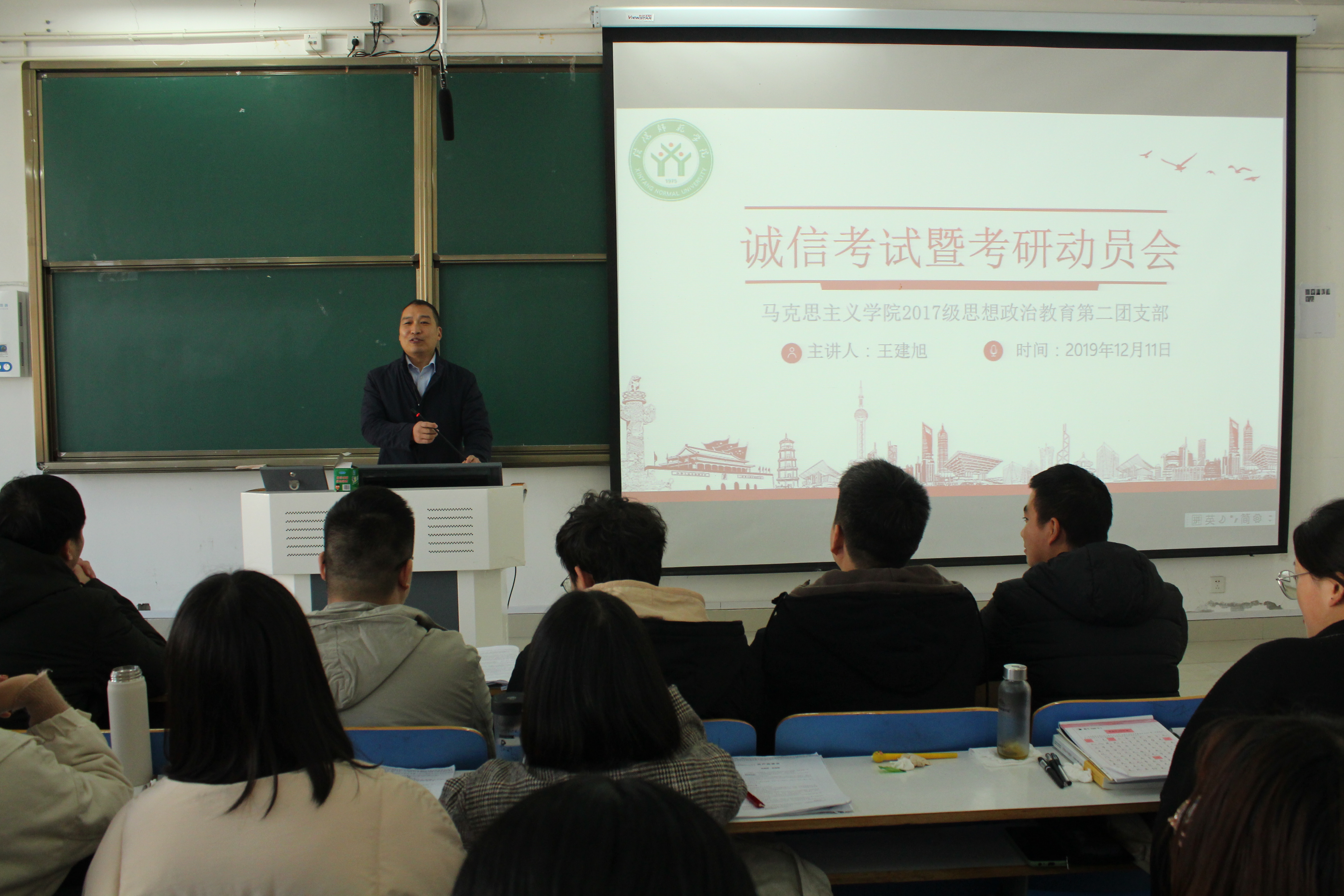 为强化纪律意识,充分调动学生的学习积极性,进一步坚定考研信心、明确目标方向。12月11日上午,ok138cn太阳集团5292017级思想政治教育第二团支部在社科楼516教室顺利开展了诚信考试暨考研动员会。团支部第一支部书记王建旭,班级辅导员孙绪曙及2017级第二团支部全体成员共同参加。会议由孙绪曙主持。