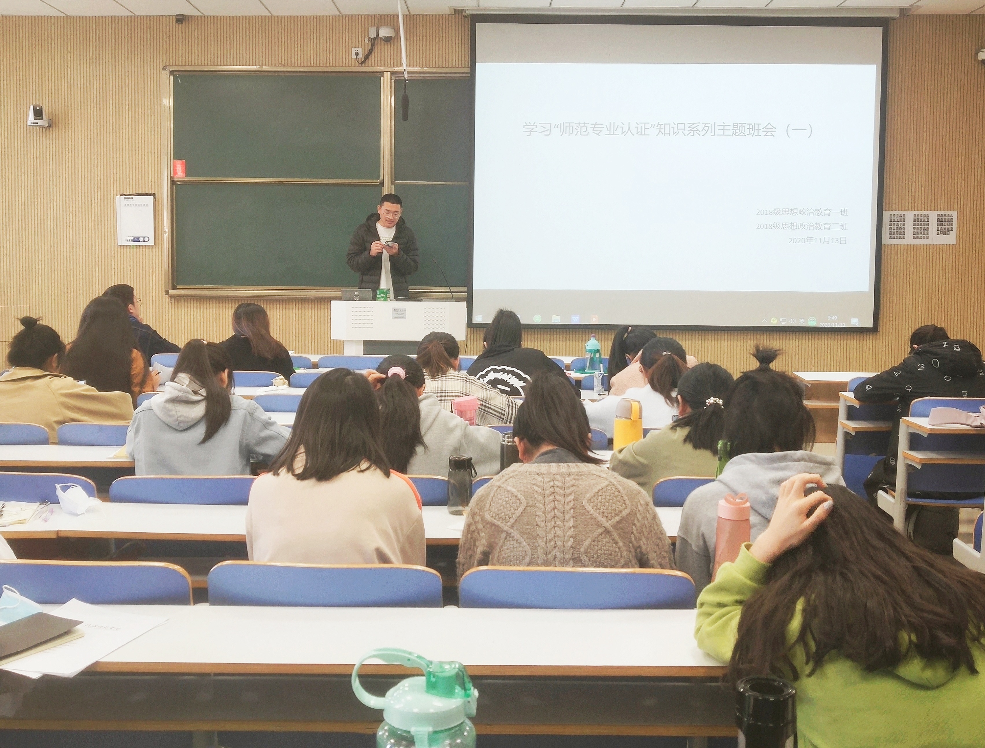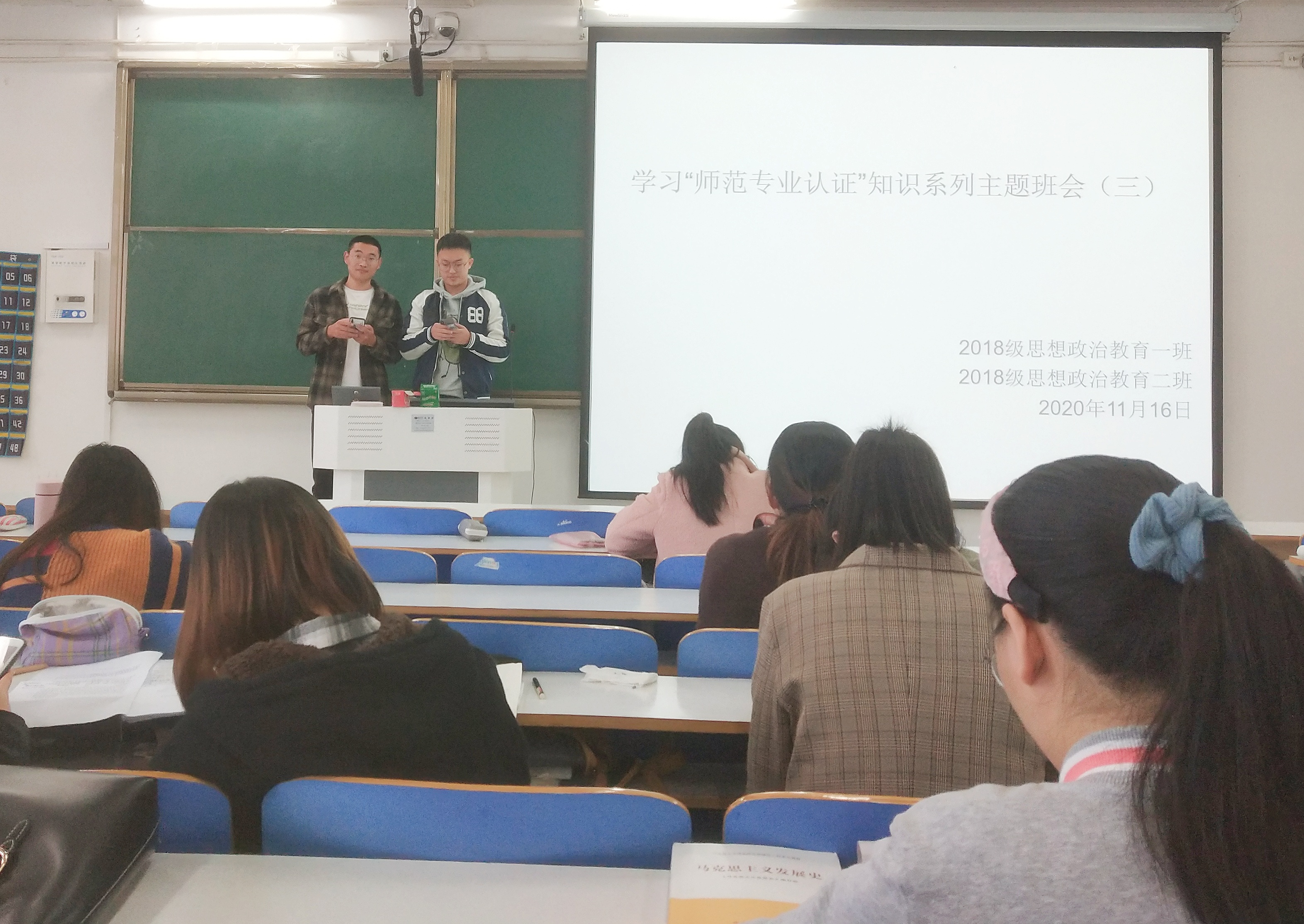 11月13日——11月16日,ok138cn太阳集团5292018级思想政治教育二班在社科楼515教室顺利开展学习“师范专业认证”知识系列主题班会。会议由班长杨康主持。