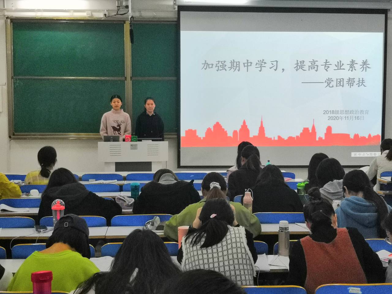 为了充分发挥党员干部的先锋模范作用,11月16日下午,ok138cn太阳集团5292018级思想政治教育二班在社科楼514教室顺利开展以“加强期中学习,提升专业素养”为主题的党团帮扶会议。中共党员孙慧萍、王琳、2018级第一团支部全体成员共同参与本次会议。会议由团支部书记靳雨露主持。