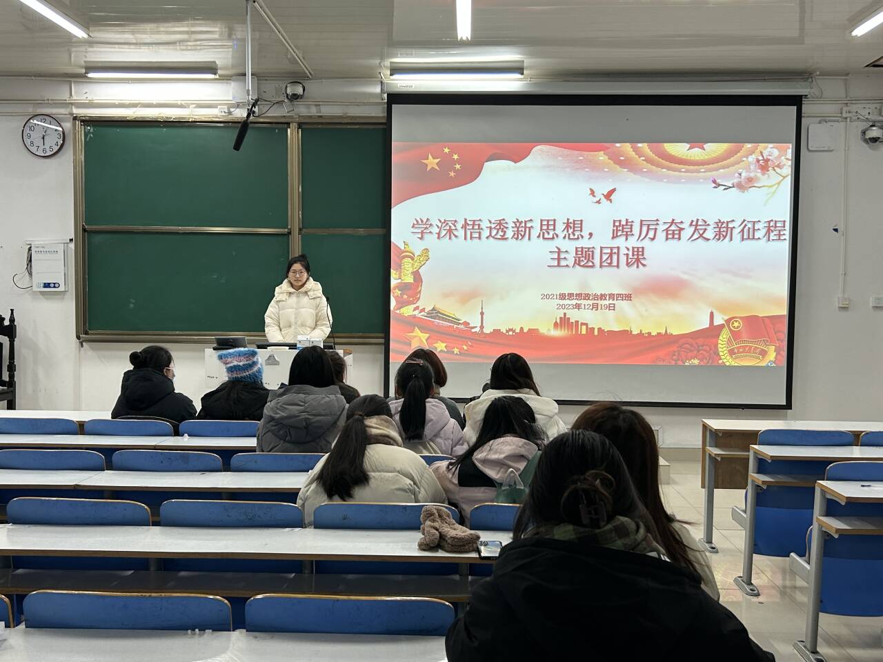 12月19日上午,ok138cn太阳集团5292021级思想政治教育四班在社科楼514教室开展“学深悟透新思想,踔厉奋发新征程”主题团课。2021级思想政治教育四班全体学生共同参加本次团课。团课由团支书刘珂含主持。