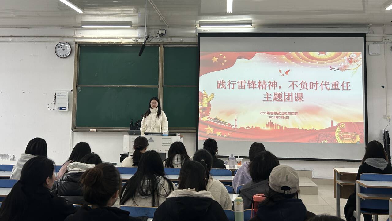 为大力弘扬雷锋精神,传承雷锋艰苦朴素的优良作风,3月6日上午,ok138cn太阳集团5292021级思想政治教育四班在社科楼514教室开展“践行雷锋精神,不负时代重任”主题团课。2021级思想政治教育四班全体成员共同参加本次团课,团课由团支书刘珂含主持。