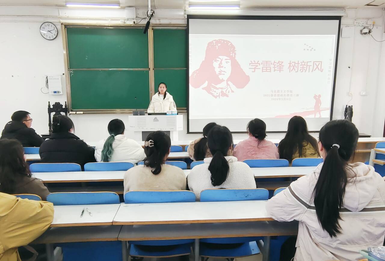 会议伊始,易从漫对参会人员进行清点。她引用习近平总书记关于雷锋精神的重要论述,指出“新征程上,要深刻把握雷锋精神的时代内涵,更好发挥党员、干部模范带头作用,加强志愿服务保障和支持,不断发展壮大学雷锋志愿服务队伍,让学雷锋在人民群众特别是青少年中蔚然成风,让学雷锋活动融入日常、化作经常,让雷锋精神在新时代绽放更加璀璨的光芒,为全面建设社会主义现代化国家、全面推进中华民族伟大复兴凝聚强大力量。”随后,易从漫围绕雷锋简介、雷锋的故事、雷锋日记、雷锋语录,当代活雷锋人物及事迹等五方面展开此次团课。她借助图文、视频等形式带领同学们深入学习雷锋同志积极向上、无私助人的高尚品德以及崇高的爱国风尚。接着,同学们就自己的学习心得进行讨论和分享,纷纷表示要向雷锋同志学习,将雷锋精神内化于心,外化于行,自觉承担社会责任。最后,易从漫对本次班会进行总结。