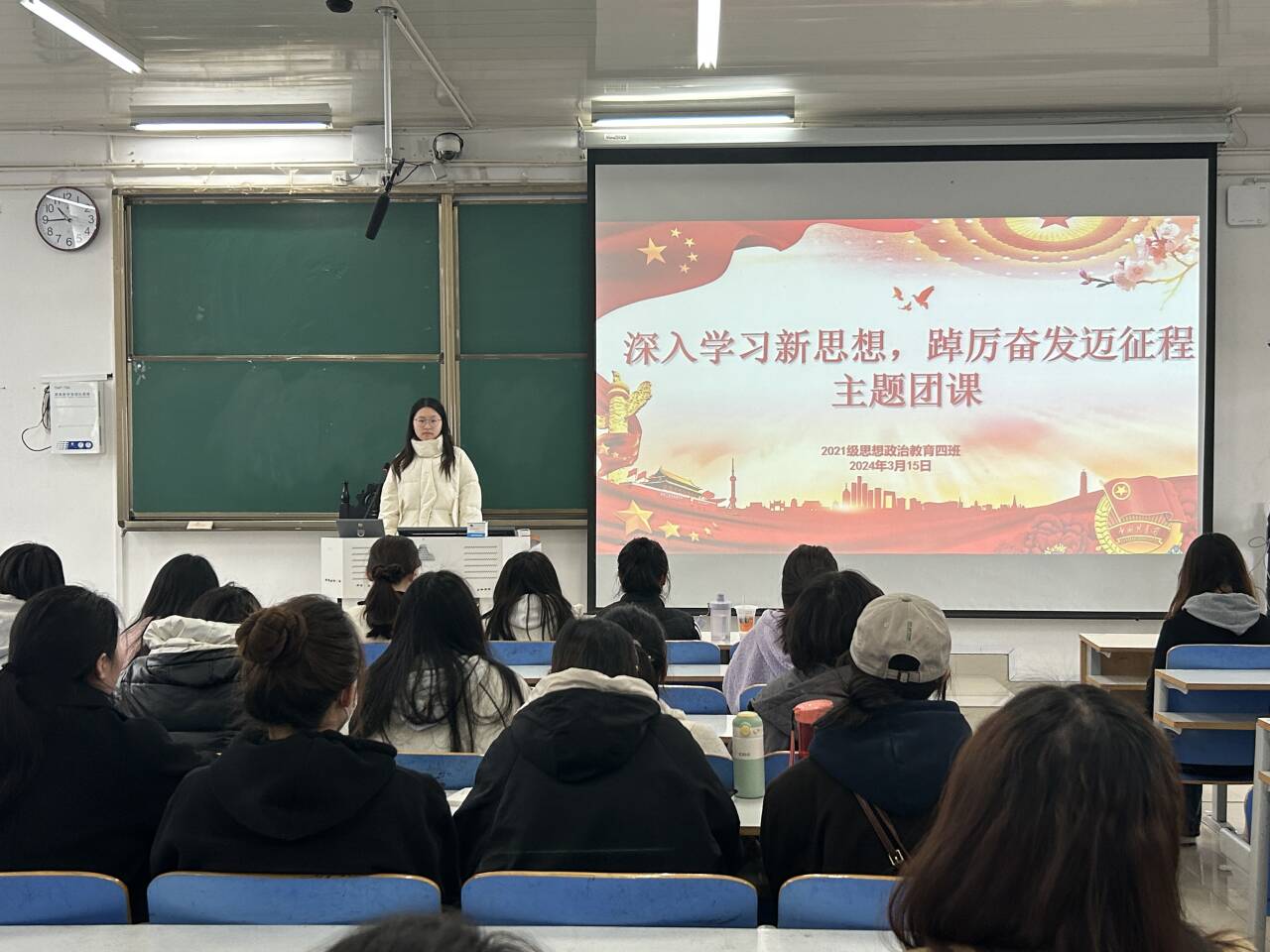 3月15日上午,ok138cn太阳集团5292021级思想政治教育四班在社科楼514教室开展“深入学习新思想,踔厉奋发迈征程”主题团课。2021级思想政治教育四班全体学生共同参加本次团课。团课由团支书刘珂含主持。